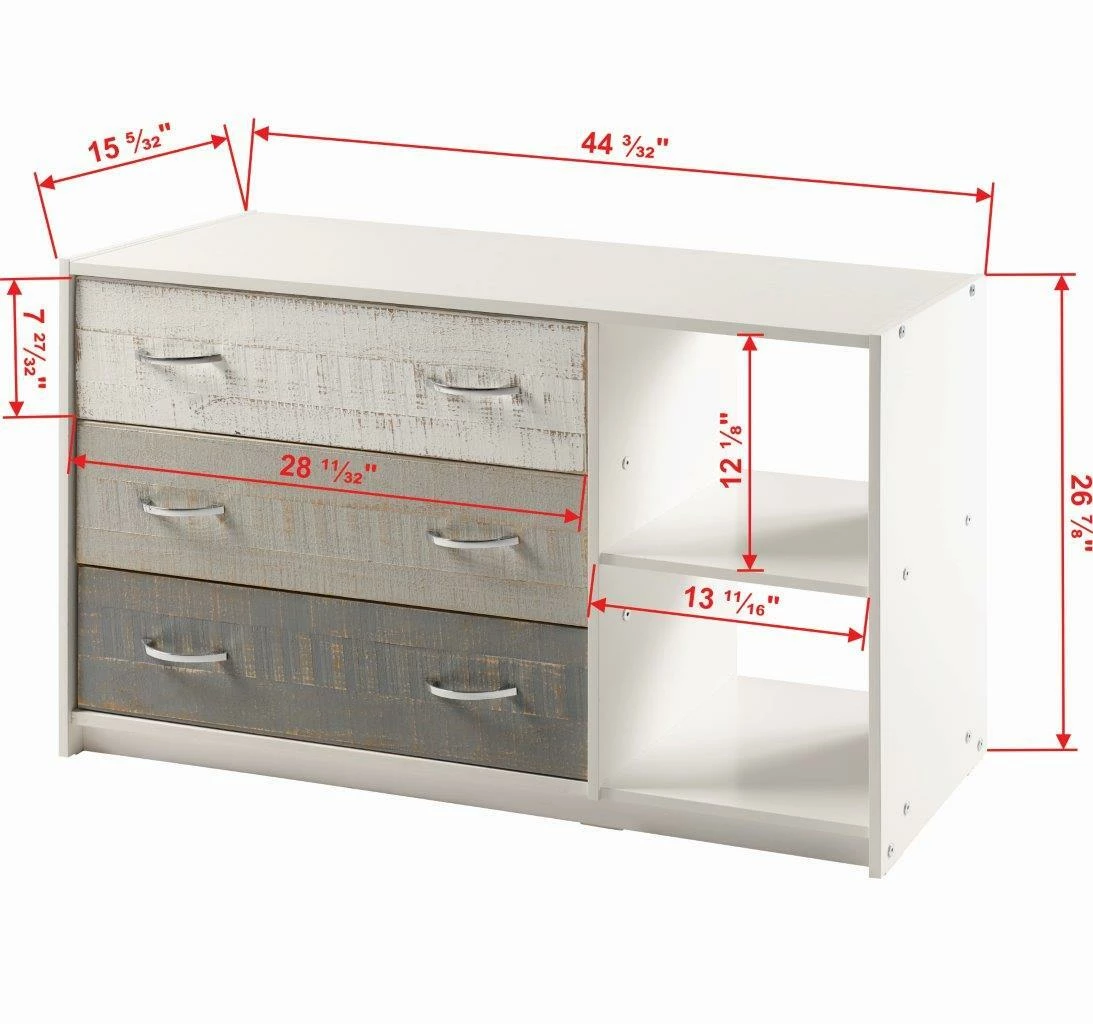 This 3 Drawer Chest/Shelf can be used as a stand-alone chest or placed under the Panel Low Loft in Two-Tone-Grey/White.