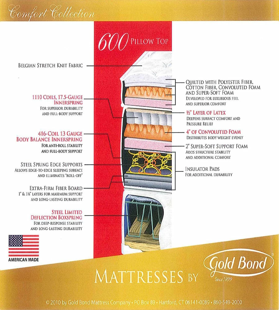 600 Pillow Top 16.5 Inch Mattress by Gold Bond