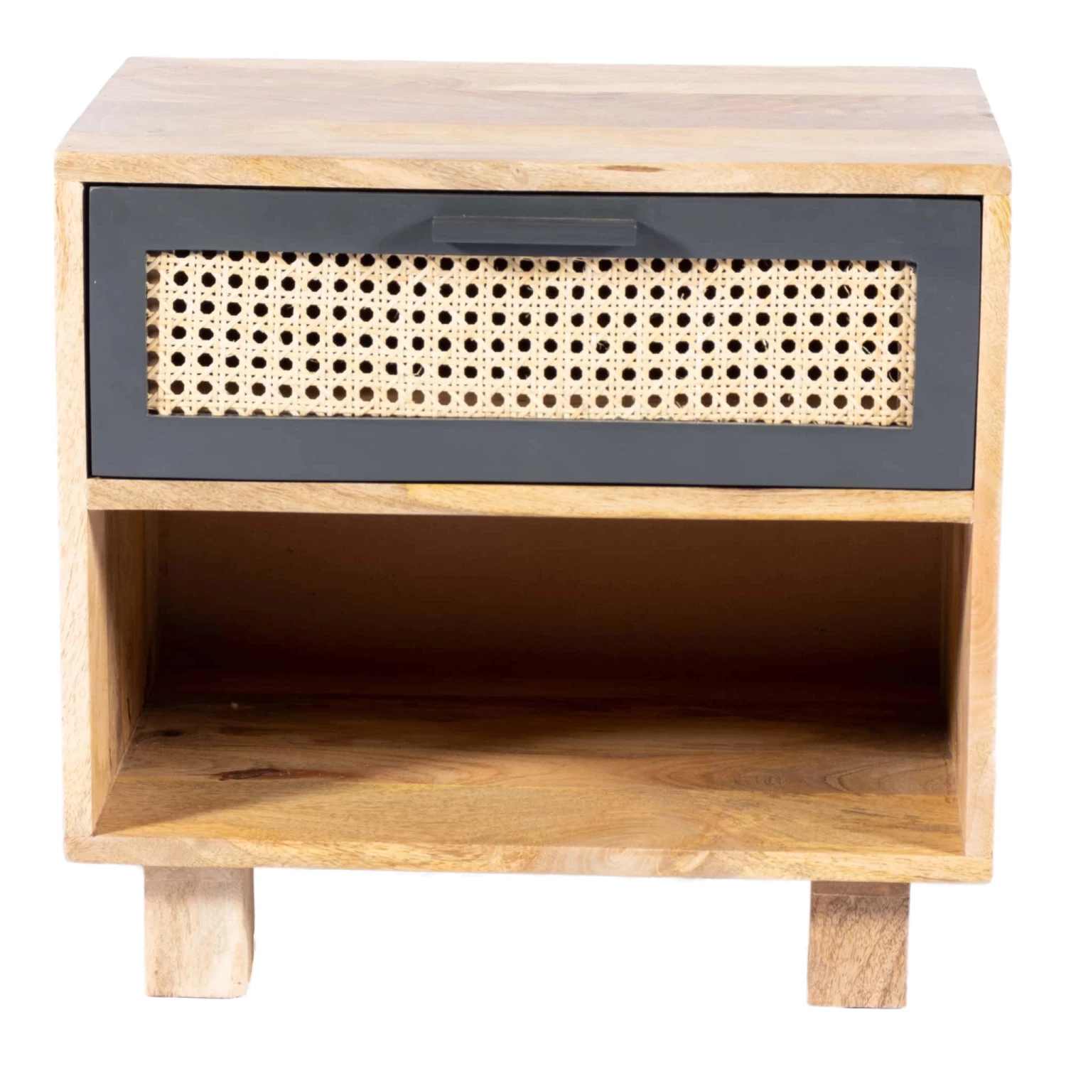 A stylish combination of solid mango wood and woven cane gives the Ashton nightstand a fresh contemporary style. It provides a single spacious, dark-framed drawer, helps to store your important bedside essentials.