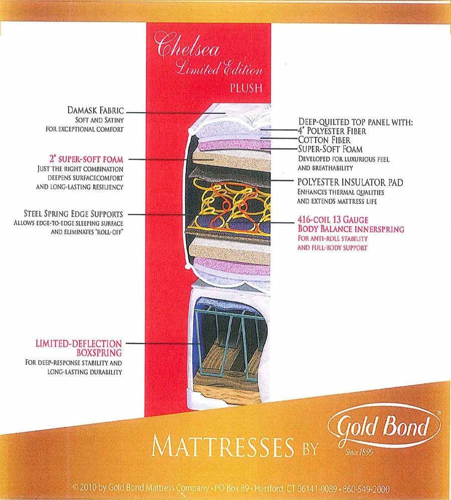 All mattresses by Gold Bond meet Flammability Standards (CA 117). Foam is certified environmentally safe by CertiPUR-US®.