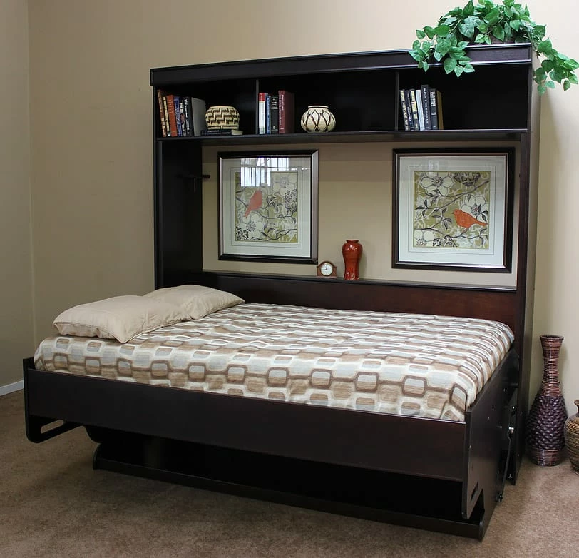 - Queen Size w/Built-in Hutch: 88″W x 50.5″D x 90″H (88″W x 70″D x 90″H Open)