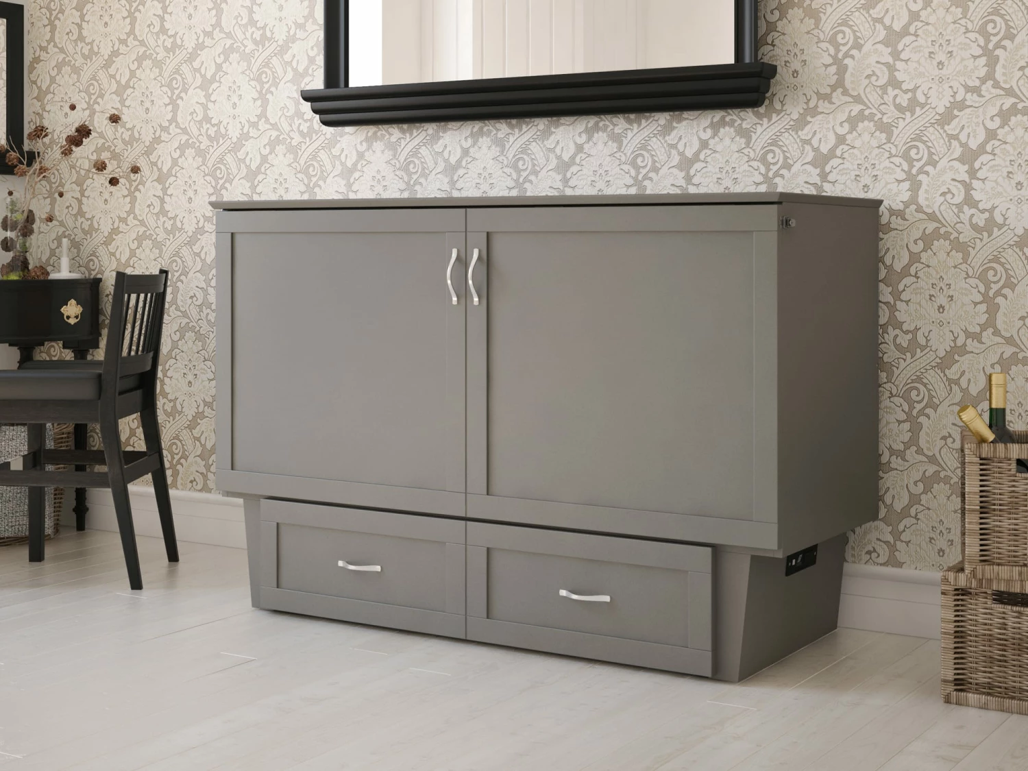 Chelsea Mid-Century Modern Queen Solid Wood Murphy Bed Chest w/Mattress in Grey by AFI Furnishing