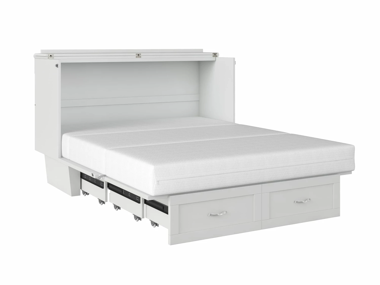 Chelsea Mid-Century Modern Queen Solid Wood Murphy Bed Chest w/Mattress in White by AFI Furnishing