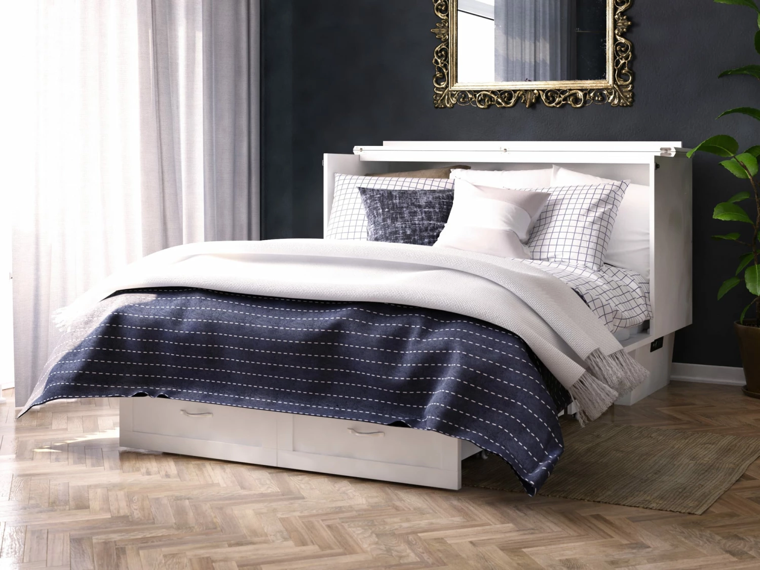 Introducing the Chelsea Murphy Bed Chest, an ideal solution for compact living or hosting overnight guests. Available in Espresso, White, or Grey, this bed chest with its sleek flat panel design blends effortlessly with any existing dโยฉcor. Experience unrivaled comfort with the included queen-sized 6″ memory foam mattress and enjoy the modern convenience of the built-in charging station with 2 USB ports. Plus, it features a sleek, roomy drawer for extra storage. Perfect for maximizing space in a cozy apartment or providing luxury to guests, the Chelsea combines style and functionality seamlessly. Transform your living experience today with the Chelsea Murphy Bed Chest!