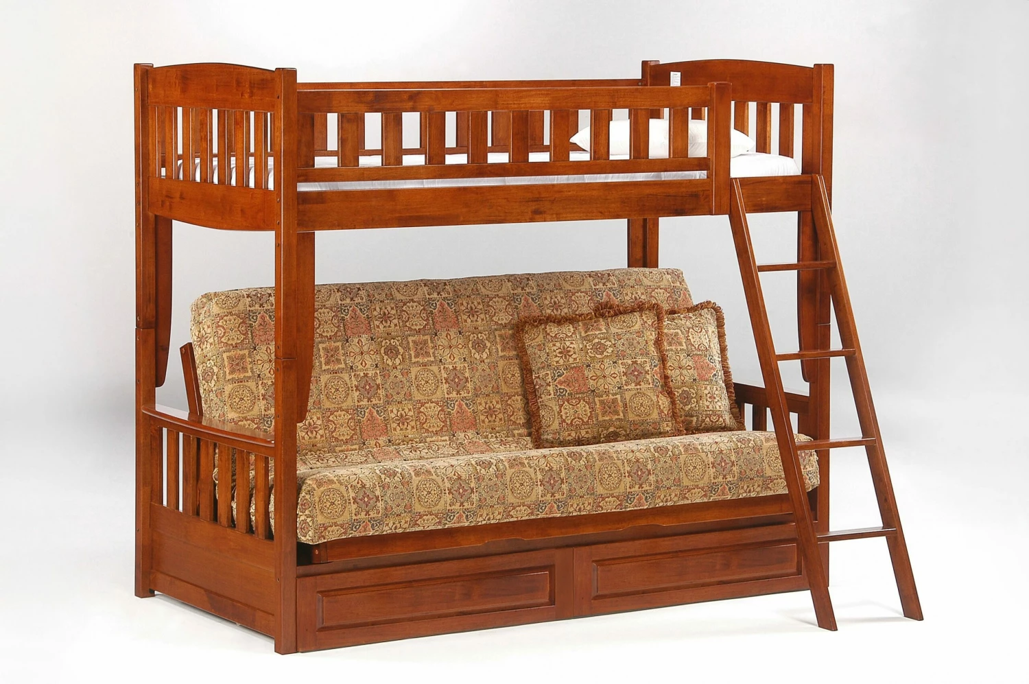 The Cinnamon Futon Bunk gives you all the comfort, style and quality you expect from a Night and Day Furniture product. Bunk Beds are notorious for cheap construction but not ours! Our handsome Cinnamon Futon Bunk maintains all our top construction and finishing standards, while remaining a great competitive value.