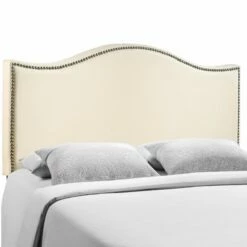 Curl Queen Nailhead Upholstered Headboard Ivory by Modern Living
