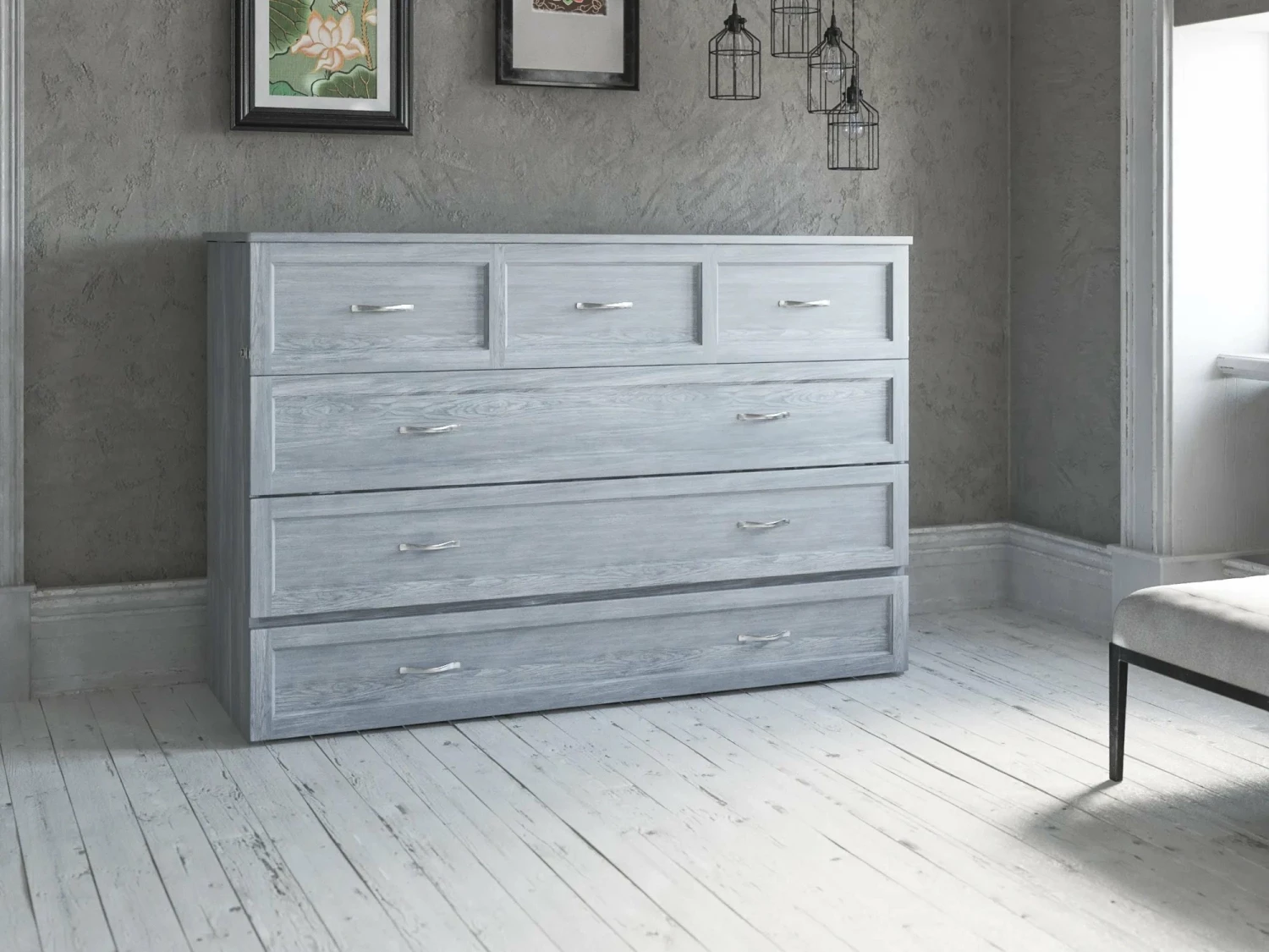 A comfortable bed tucked away in an elegant space saving chest! Our Murphy Bed chests provide guest sleep space without sacrificing style. The compact chests come in two popular designs and include a premium memory foam mattress.