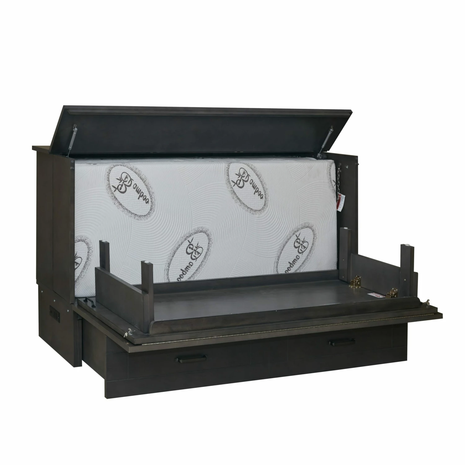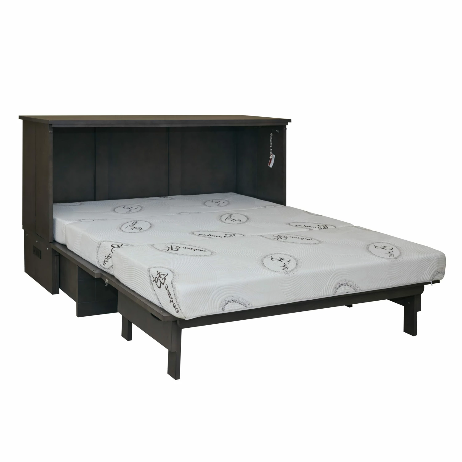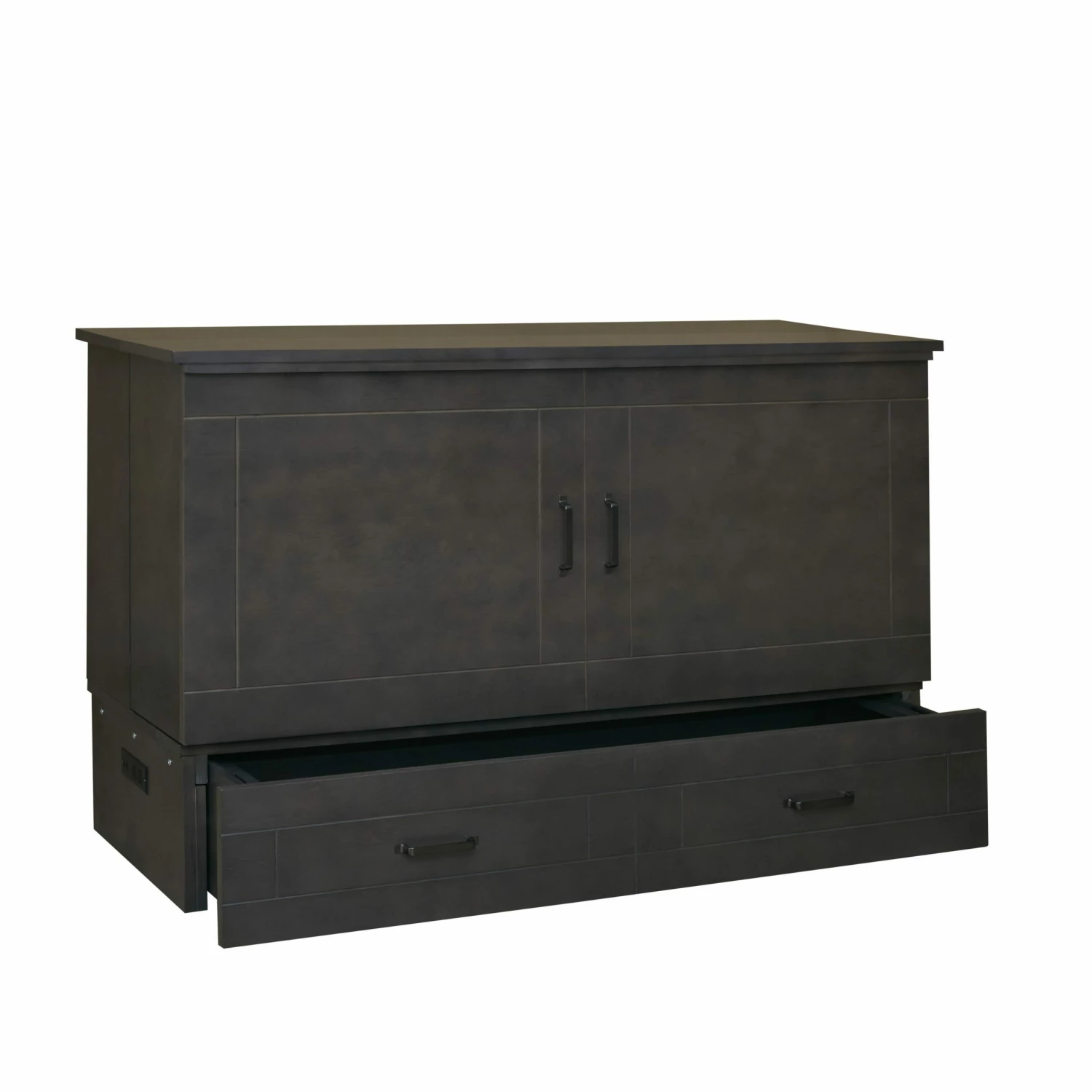 CabinetBed comes with high-quality hardware and hydraulic lifts for easy opening and closing. The patented side panels open a full 80 degrees for a more open sleeping experience. There is a convenient USB power hub built into the side of the bed which is great for charging phones and plugging in lamps or any other devices.