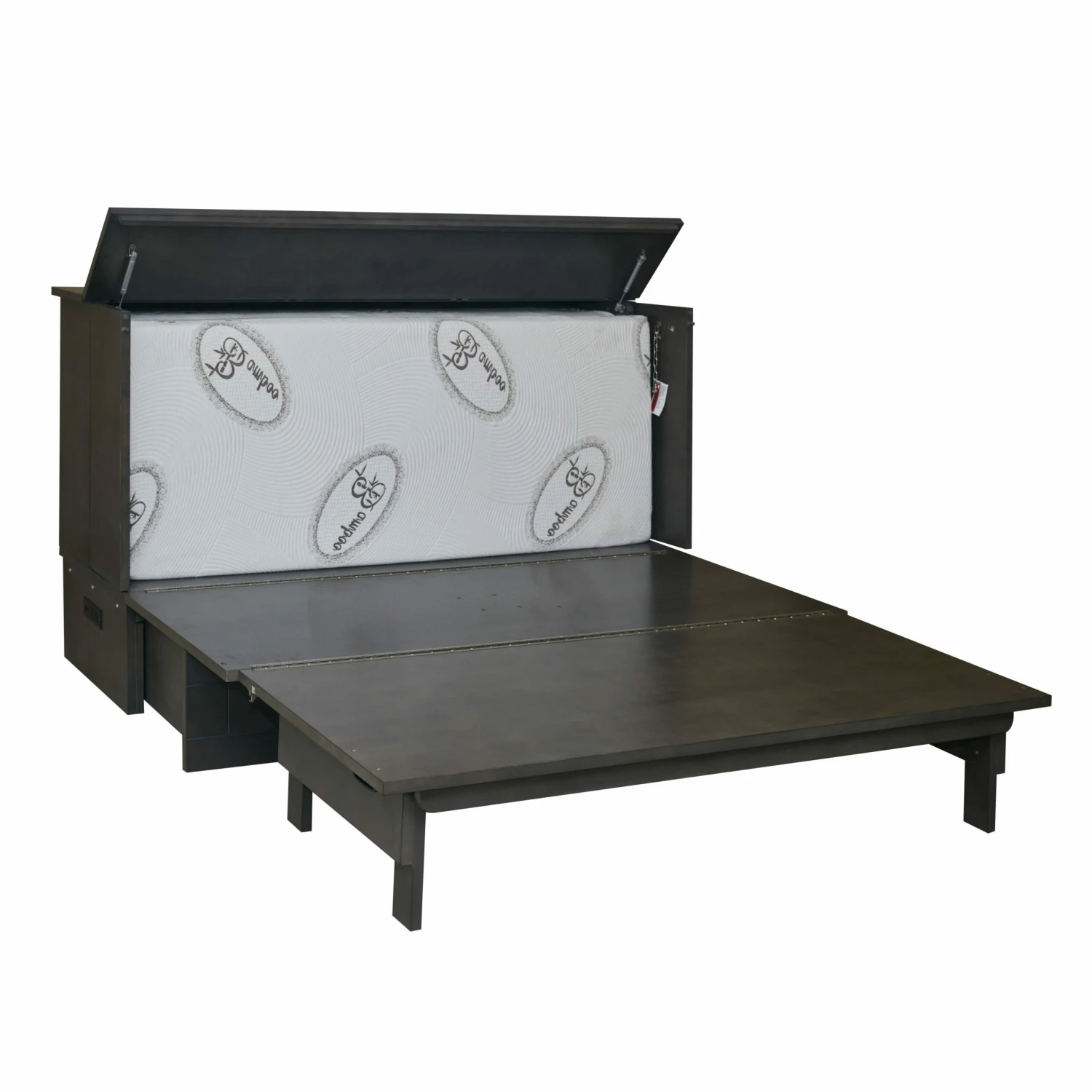 Made with solid birch plywood it is built to last and can withstand over 500 lbs easily. It contains a true queen-size tri-fold mattress with a removable and washable bamboo cover. With the biggest storage drawer in the industry, there is plenty of room for all your linens, blankets, and pillows.