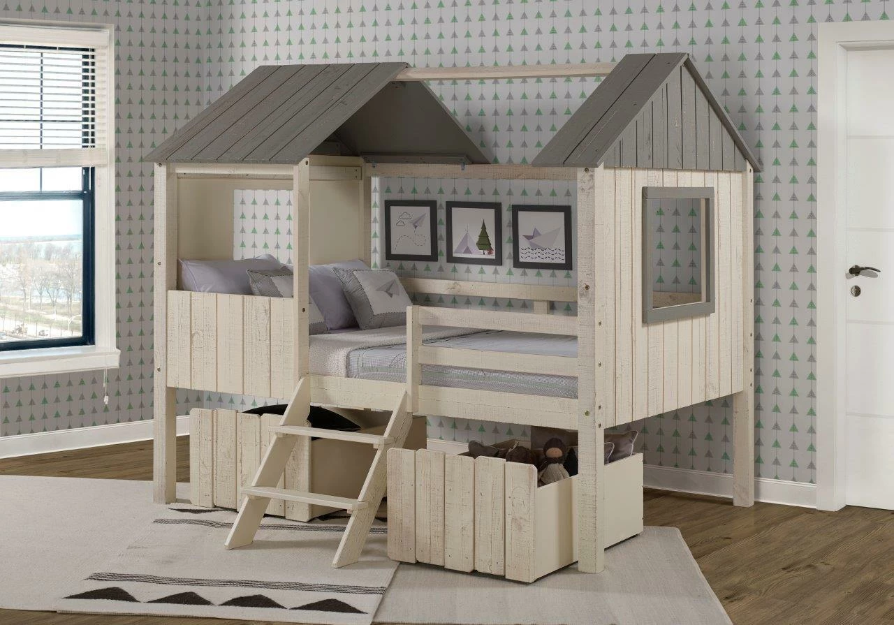 Full House Low Loft Rustic Sand/Rustic Grey With Dual Loft Drawers by Donco