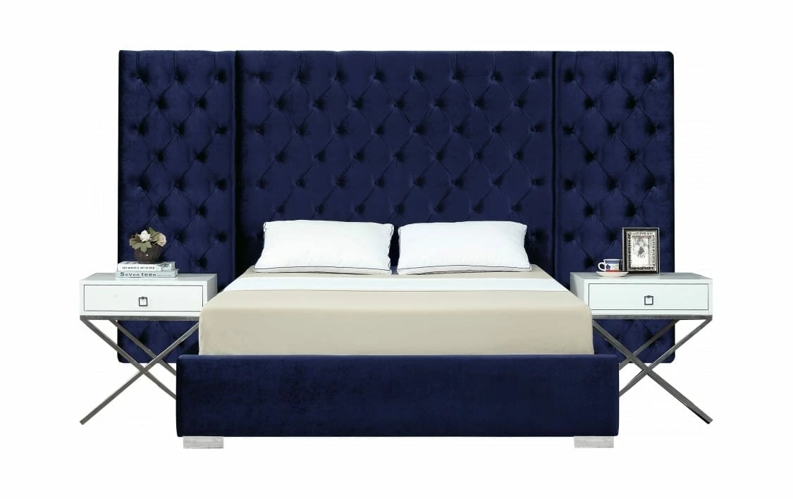 Grande Navy Blue Velvet Bed by Meridian Furniture
