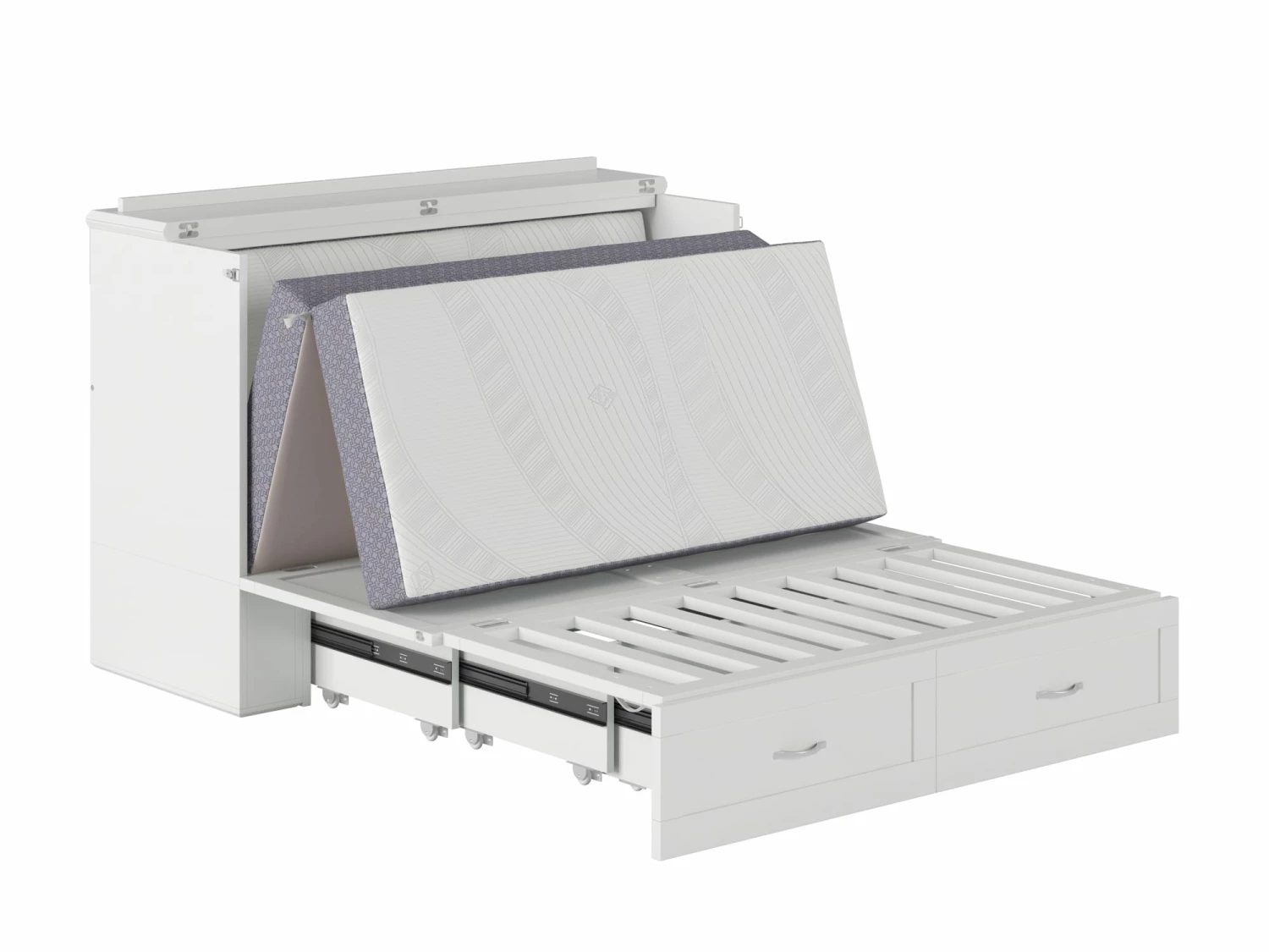 A comfortable bed tucked away in an elegant space saving chest! Our Murphy Bed chests provide guest sleep space without sacrificing style. The compact chests come in two popular designs and include a premium memory foam mattress.