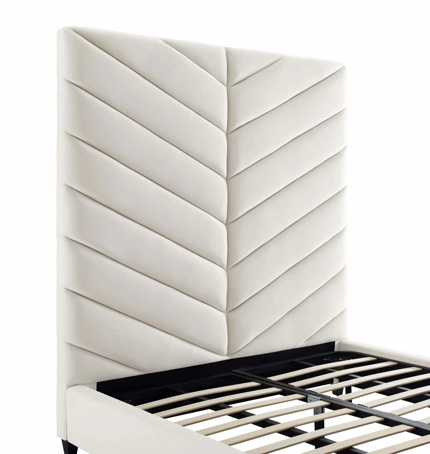 At once subtle and dramatic, the Javan bed invites you to spend the night in style. Upholstered in plush velvet with a channel tufted design, it’s available in King or Queen sizes and multiple colors. Slats are included and a box spring is not required.