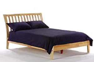 The Nutmeg Bed is a great choice for the contemporary room. Its flared legs and curved-slat styling is a current classic.