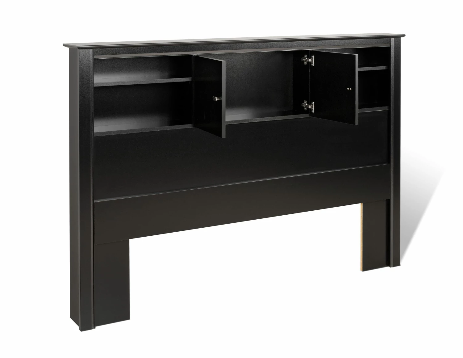 Give your bedroom a touch of elegance with the Kallisto Bookcase Headboard with Doors. This practical headboard boasts stylish details like decorative side and top moldings and oval brushed nickel knobs. The doors, fitted with 6-way adjustable self-closing hinges, provide a neat hideaway for any possessions you want within reach yet out of sight, and are flanked by two additional compartments for even more storage. This piece perfectly complements full and queen bedframes and matches Prepac’s Platform Storage Beds.
