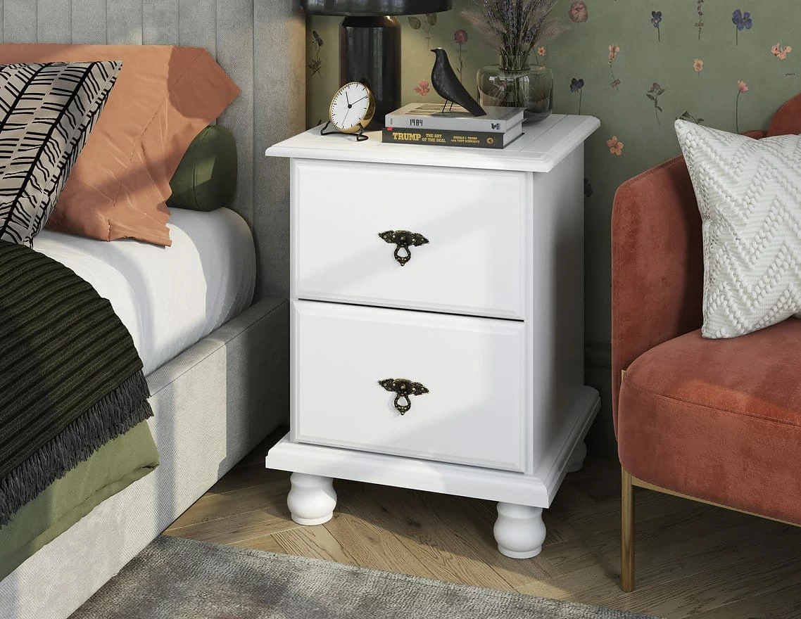 Kyle collection’s timeless design will never go out of fashion! This 100% solid wood 2‚Äêdrawer nightstand will look like an heirloom in any room thanks to its elegant intricately carved edges, turned bun feet and solid wood construction. It goes well with the matching Kyle bed but can also be purchased separately.