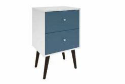 Liberty White and Aqua Blue Mid Century – Modern Nightstand 2.0 w/ 2 Full Extension Drawers & Solid Wood Legs