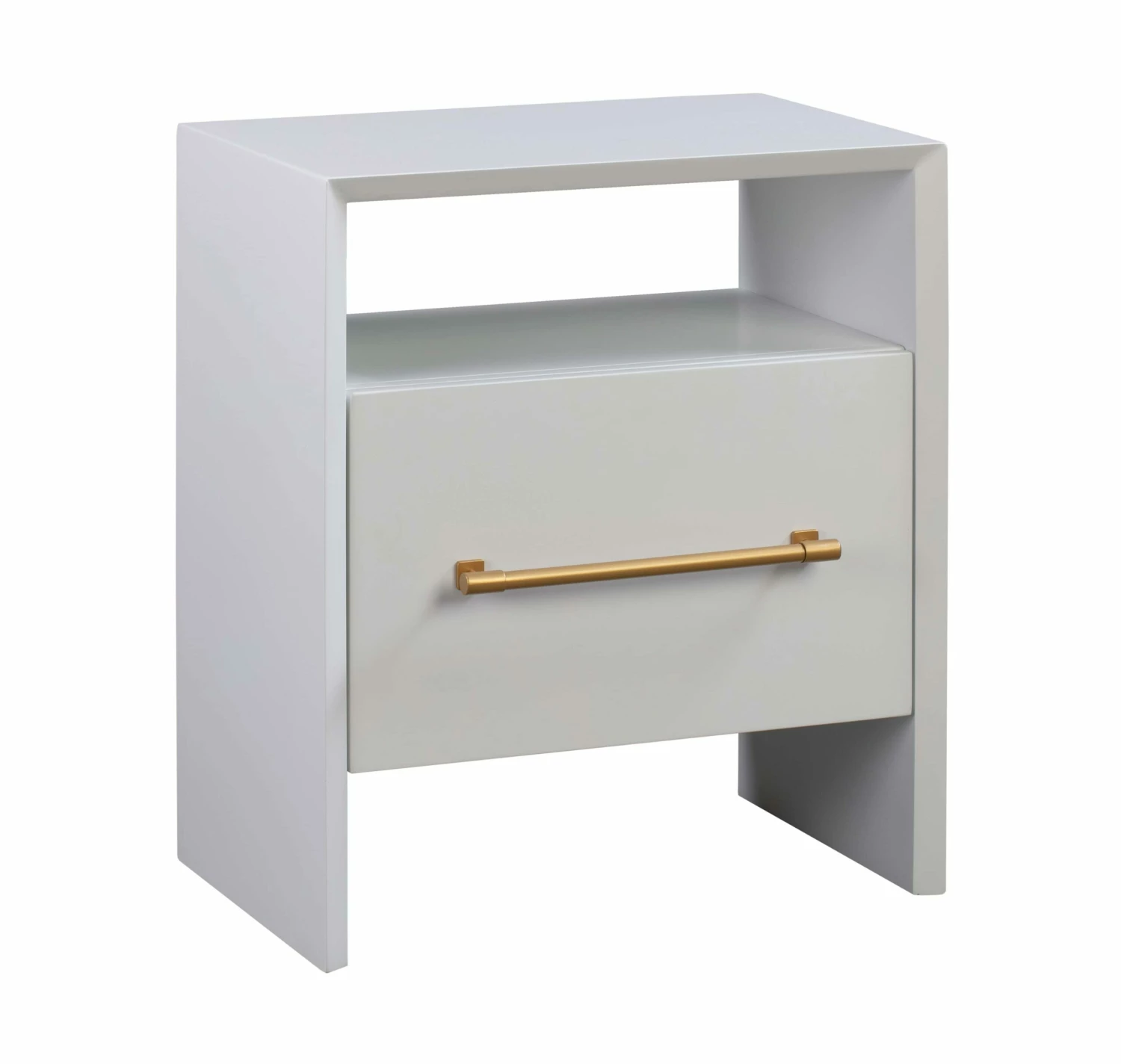 Stunning in its simplicity, this clean-lined nightstand modern appeal and stylish functionality. One drawer and a shelf above provide ample bedside storage. Available in two color options.