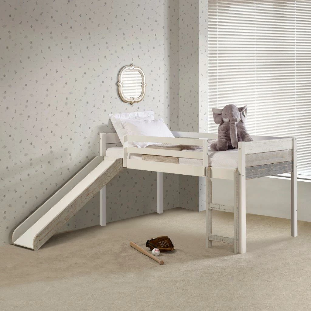 Low Loft Bed/Slide/Slats Grey White by Donco