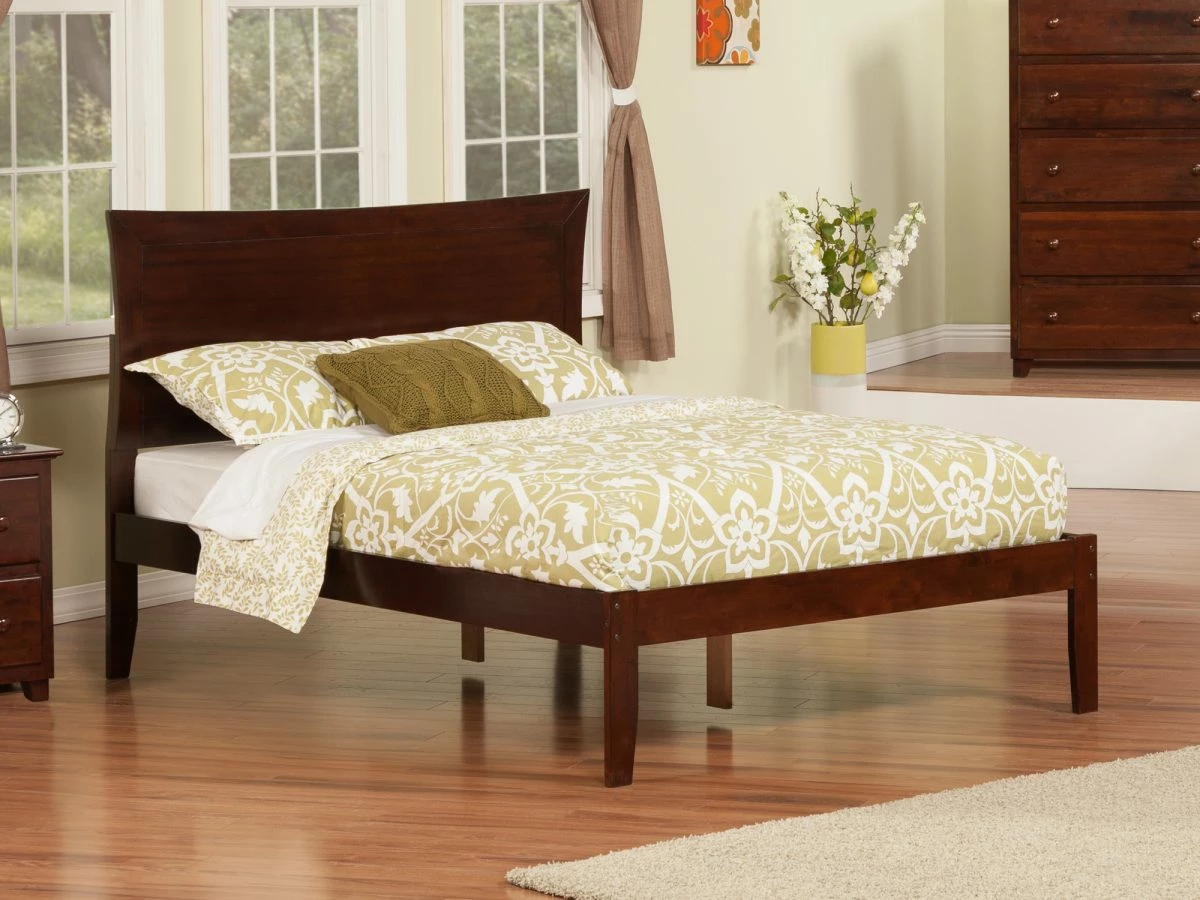 Atlantic Furniture platform beds are Ready to Assemble (RTA), feature small packaging that ships by UPS Ground and fits in most hatchback vehicles. Includes side rails and 14 piece solid hardwood slat kit. Sturdy dowel, bolt & barrel nut assembly. Platform beds available in Espresso, White, Antique Walnut and Caramel Latte finishes with Open Footrail.
