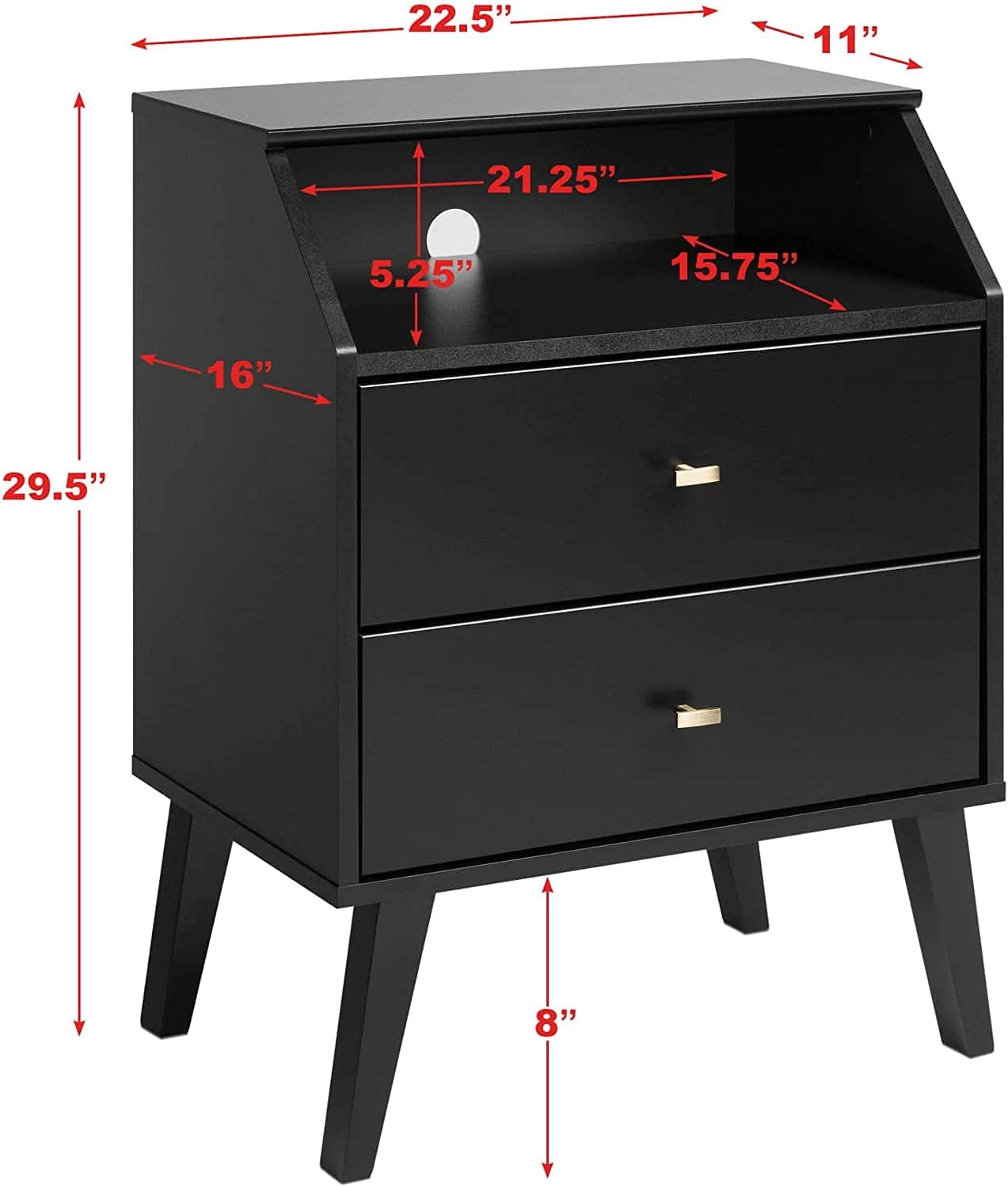 Milo 2 Drawer Black Nightstand w/Angled Top by Prepac