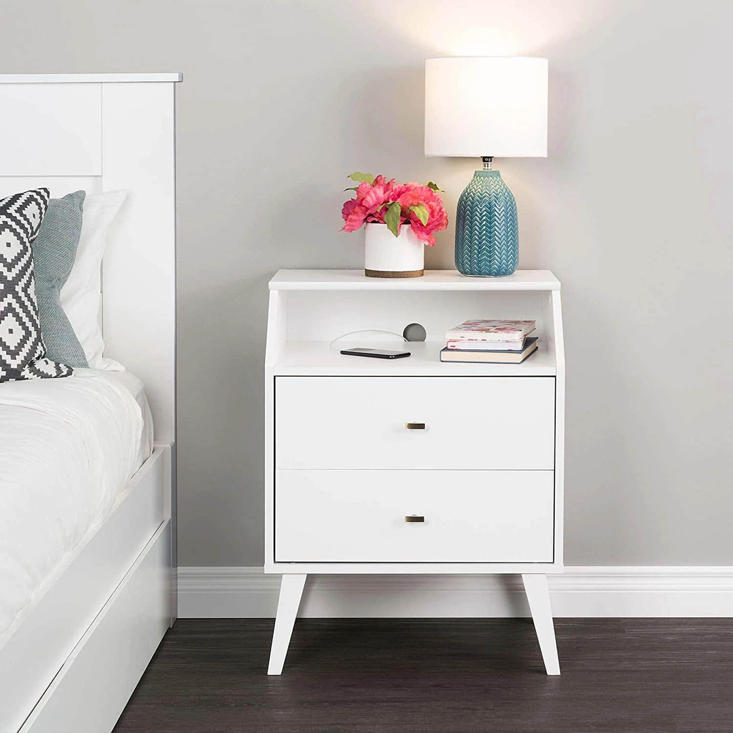Milo 2 Drawer White Nightstand w/Angled Top by Prepac