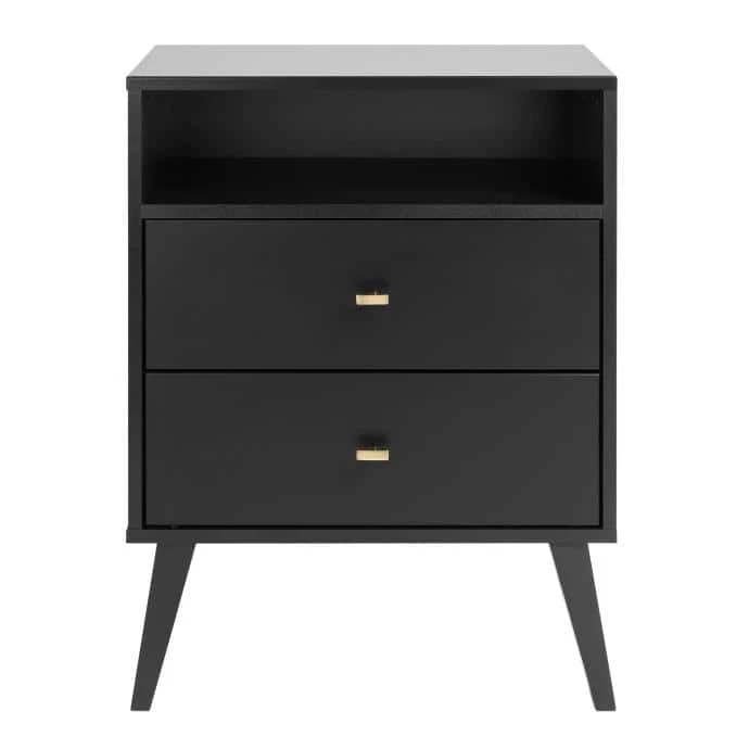 Milo Mid-Century 2-drawer Black Tall Nightstand w/Open Shelf by Prepac
