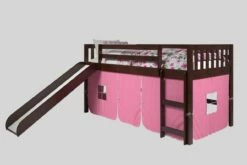 Transition your child from a toddler bed to an exciting mission twin low loft bed. The included slide makes it fun to get up in the morning. Traditional Cappuccino finish can easily match most any decor. The bed is a great space saver in any child’s bedroom, with play area under the bed or open storage area.