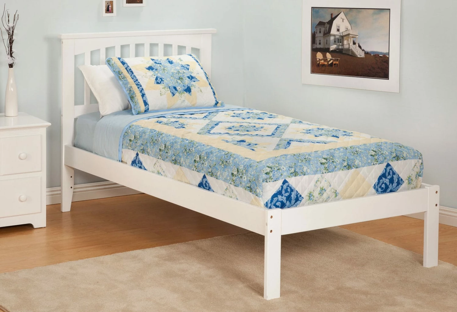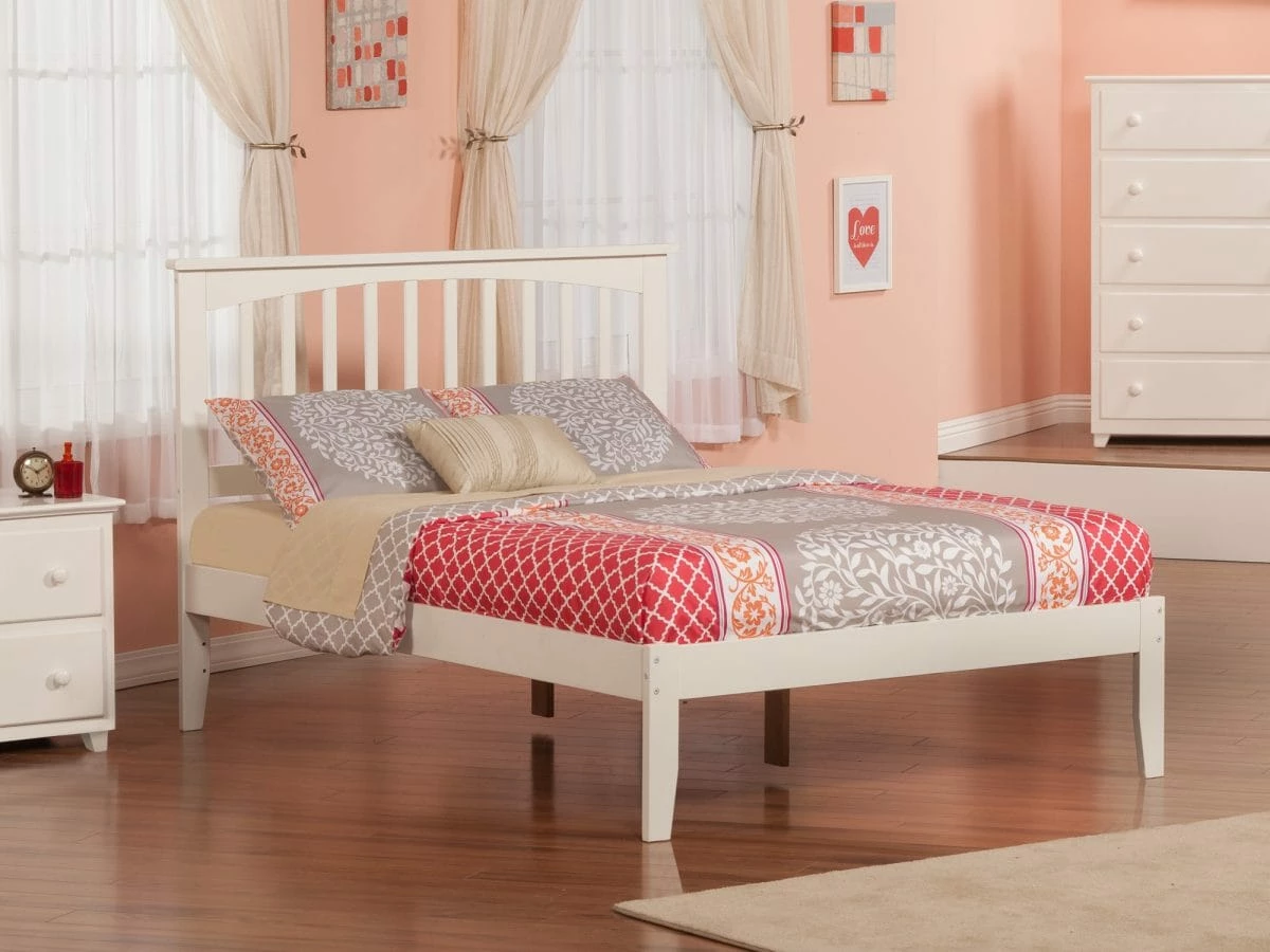 Atlantic Furniture platform beds are Ready to Assemble (RTA), feature small packaging that ships by UPS Ground and fits in most hatchback vehicles. Includes side rails and 14 piece solid hardwood slat kit. Sturdy dowel, bolt & barrel nut assembly. Platform beds available in Espresso, White, Antique Walnut and Caramel Latte finishes with Open Footrail.