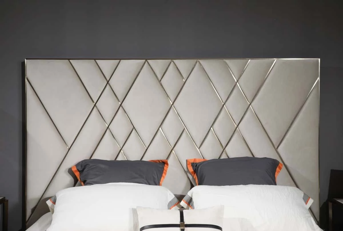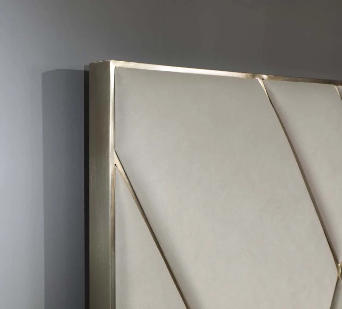 - Stainless Steel Brush Brass Accented Headboard and Base