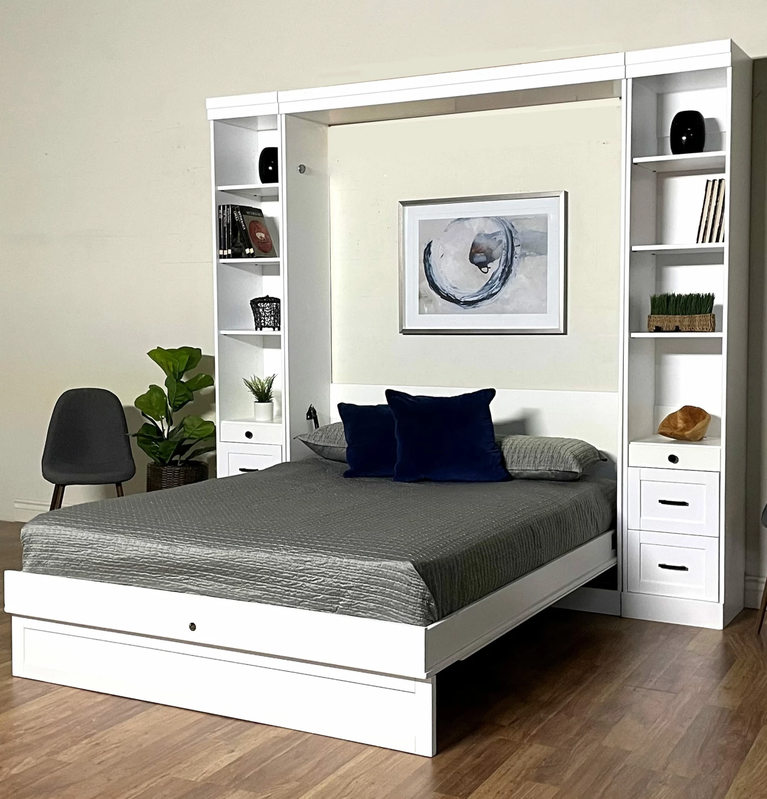 Experience the timeless charm of the Nantucket Wallbed, meticulously designed with attention to detail. The stepped top crown molding and finished baseboard front ensure that nothing can get underneath, providing a seamless and elegant appearance. Crafted in the USA from Farm grown European Beech solids and domestic veneers, this wallbed guarantees superior durability. The mattress box surround, although mattress not included, keeps your bedding securely in place when you close the bed, preventing it from falling down behind. With a cabinet back notch out of 1″ x 6″, the Nantucket accommodates most baseboards effortlessly. The floating safe piston lift mechanism adds an extra layer of convenience and safety. To open the bed, simply lift the panel foot towards the top to unlatch it. Then, grasp the hand hole and utilize your body weight to help the bed open slowly and smoothly towards the floor. Once partially opened, the bed will gracefully float down the rest of the way to the floor. Immerse yourself in the perfect blend of functionality, durability, and sophistication with the Nantucket Wallbed, an exquisite addition to your space.