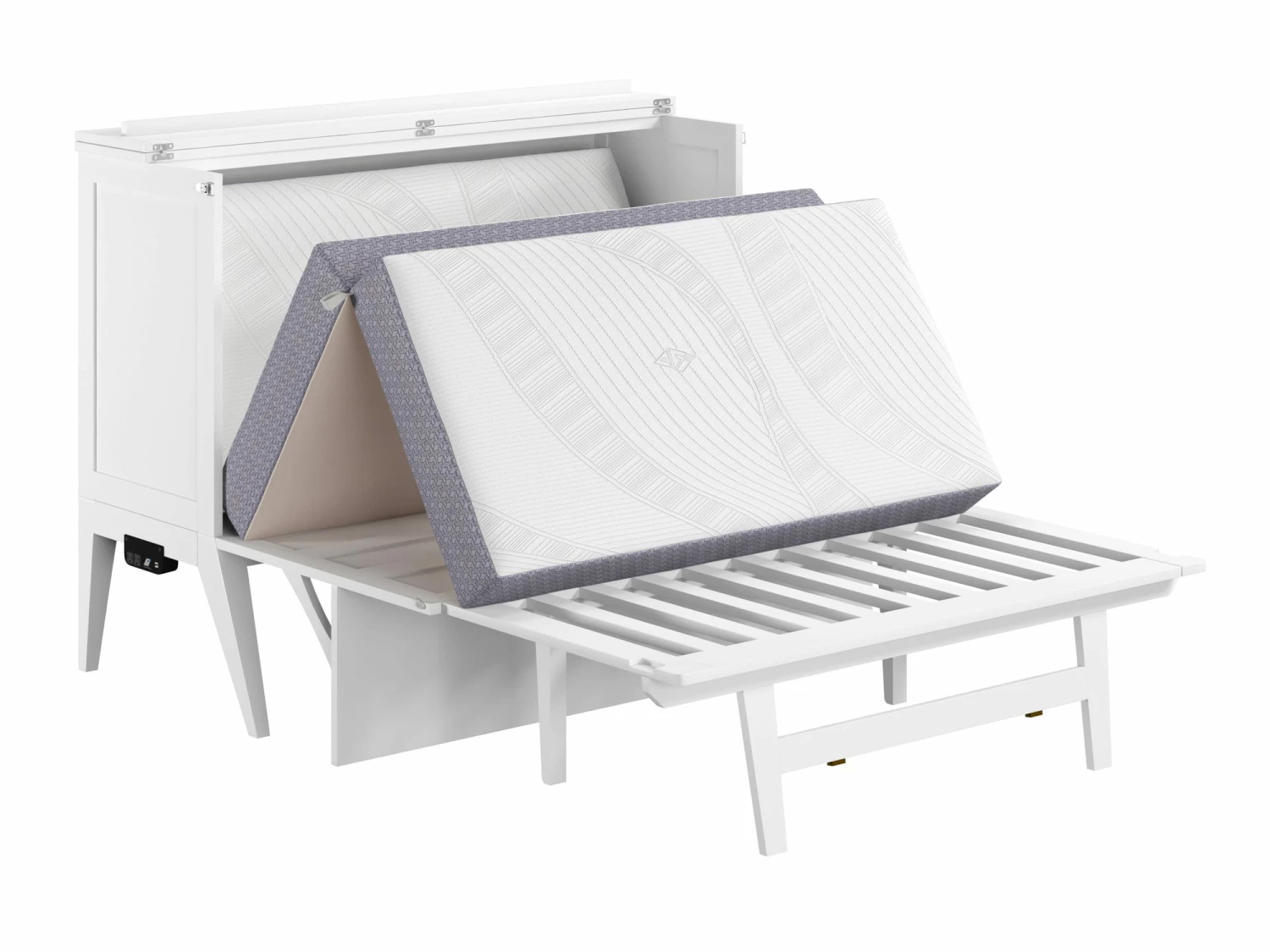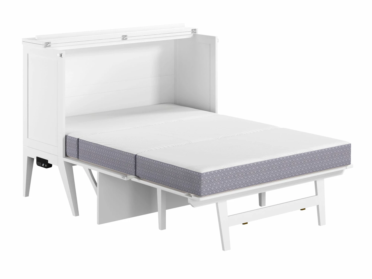 A breakthrough in multifunctional furniture, the Northampton Murphy Bed Desk transforms from a stylish desk into a fully functional bed in seconds. When closed, the desk provides a generous surface for work or study. When you are done for the day, simply release the side latches and unfold the mattress to convert the workspace into a comfortable bed.