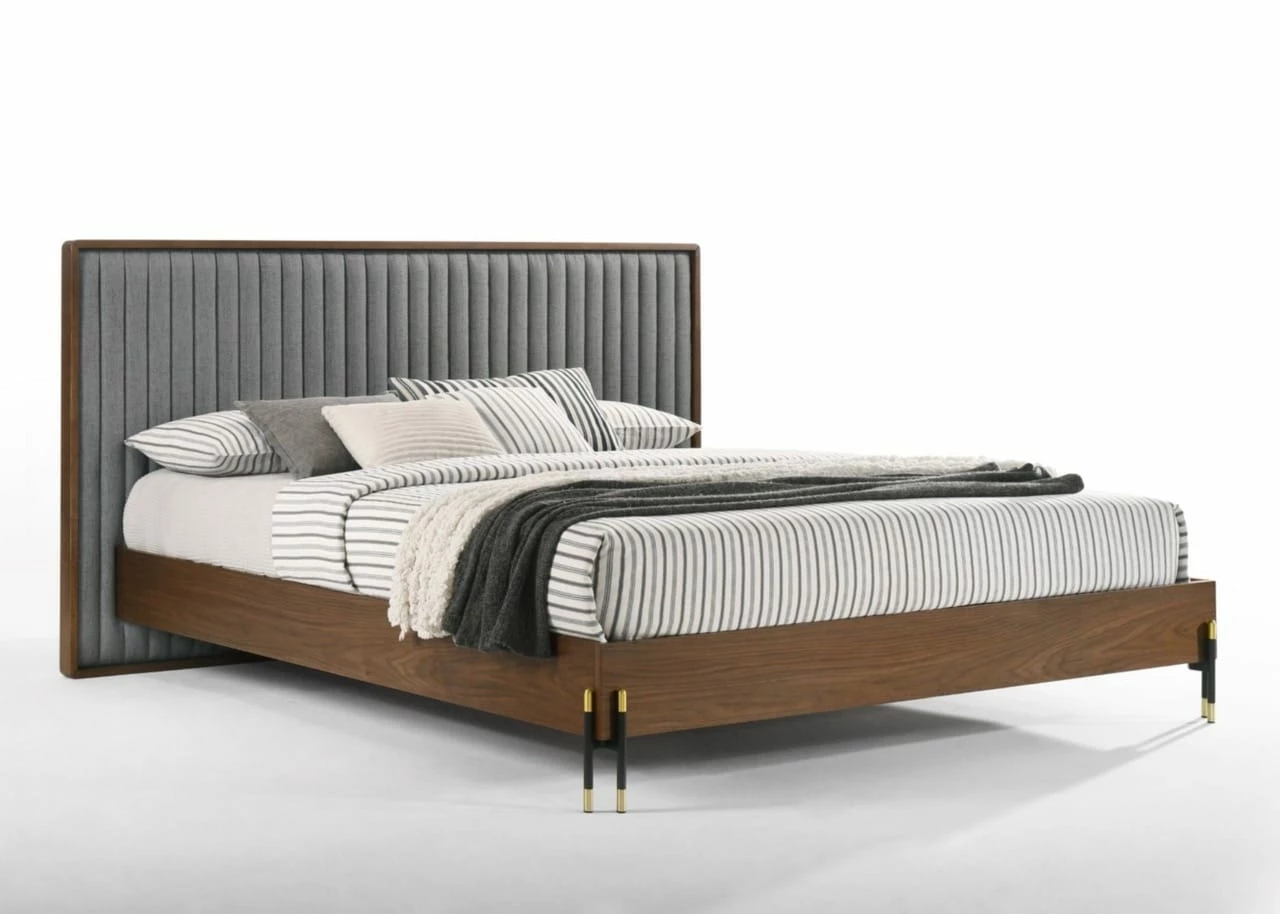 Nova Domus Metcalf – Eastern King Mid-Century Walnut & Grey Bed by VIG Furniture