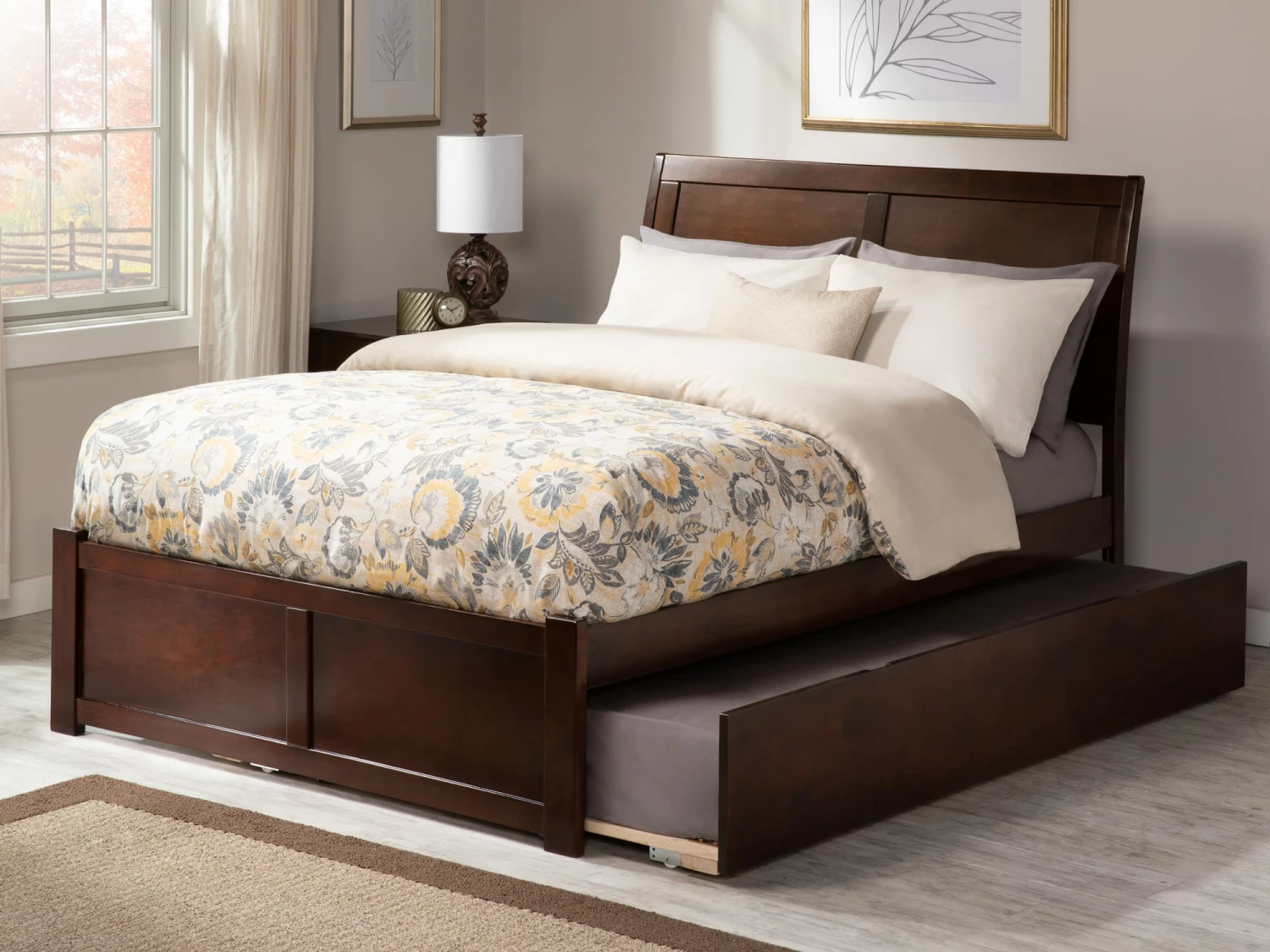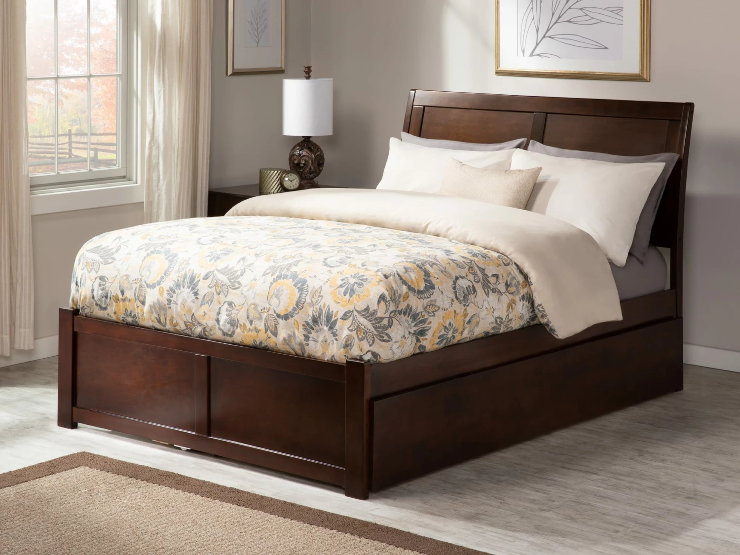 Portland Solid Wood King Platform Bed w/Footboard & Twin XL Trundle in Walnut by AFI Furnishing