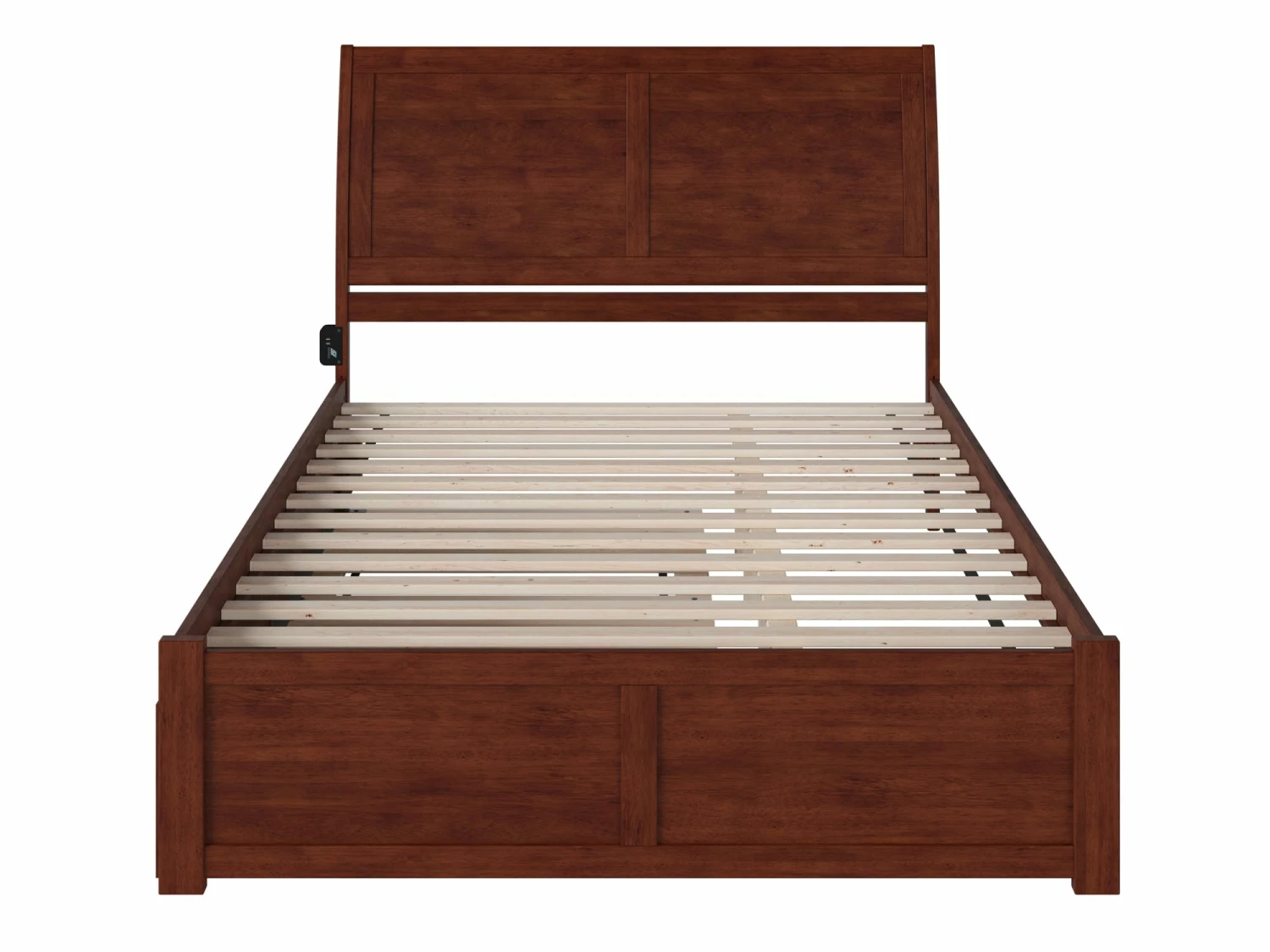 Classic meets contemporary with the sleigh style Portland Platform Bed with Panel footboard. The slightly bowed headboard makes this bed standout. Tucked under the bed is a twin extra long size trundle that can roll out from either side of the frame for extra sleeping space – making sleepovers a breeze! Complete with a supportive slat kit, the Portland Platform bed is mattress ready-no foundation necessary! Attach the included surface mount turbo charger and keep all your electronics charged and ready to go!
