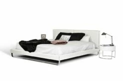 Queen Modrest Ramona Modern White Leatherette Bed by VIG Furniture