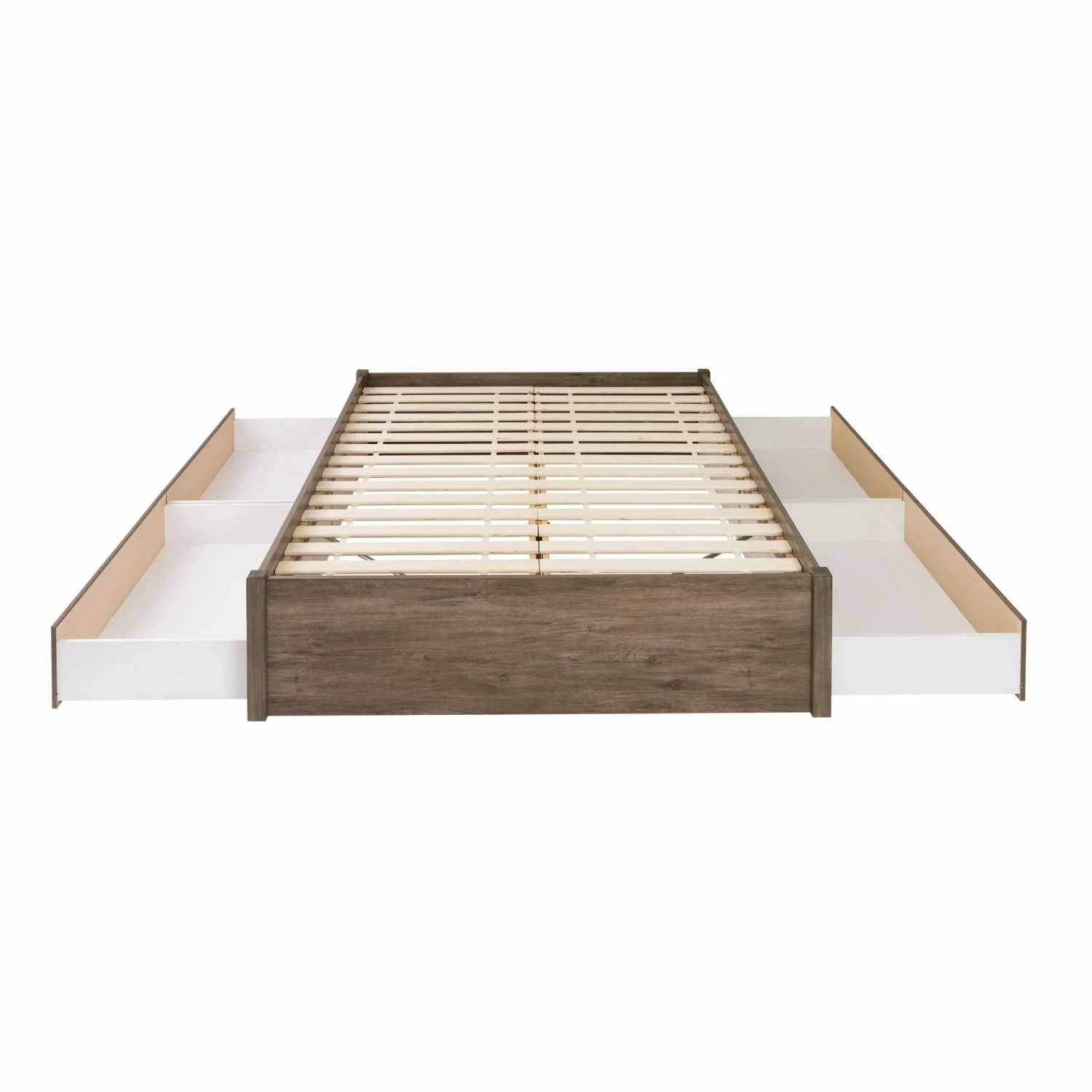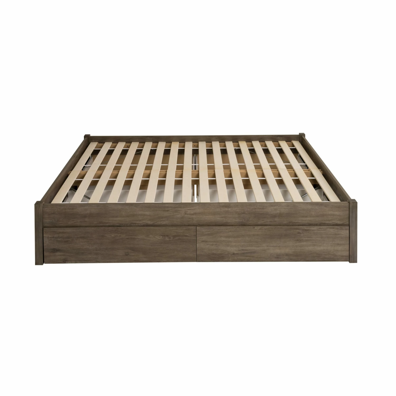 Queen Select 4-Post Drifted Gray Platform Bed w/4 Drawers by Prepac