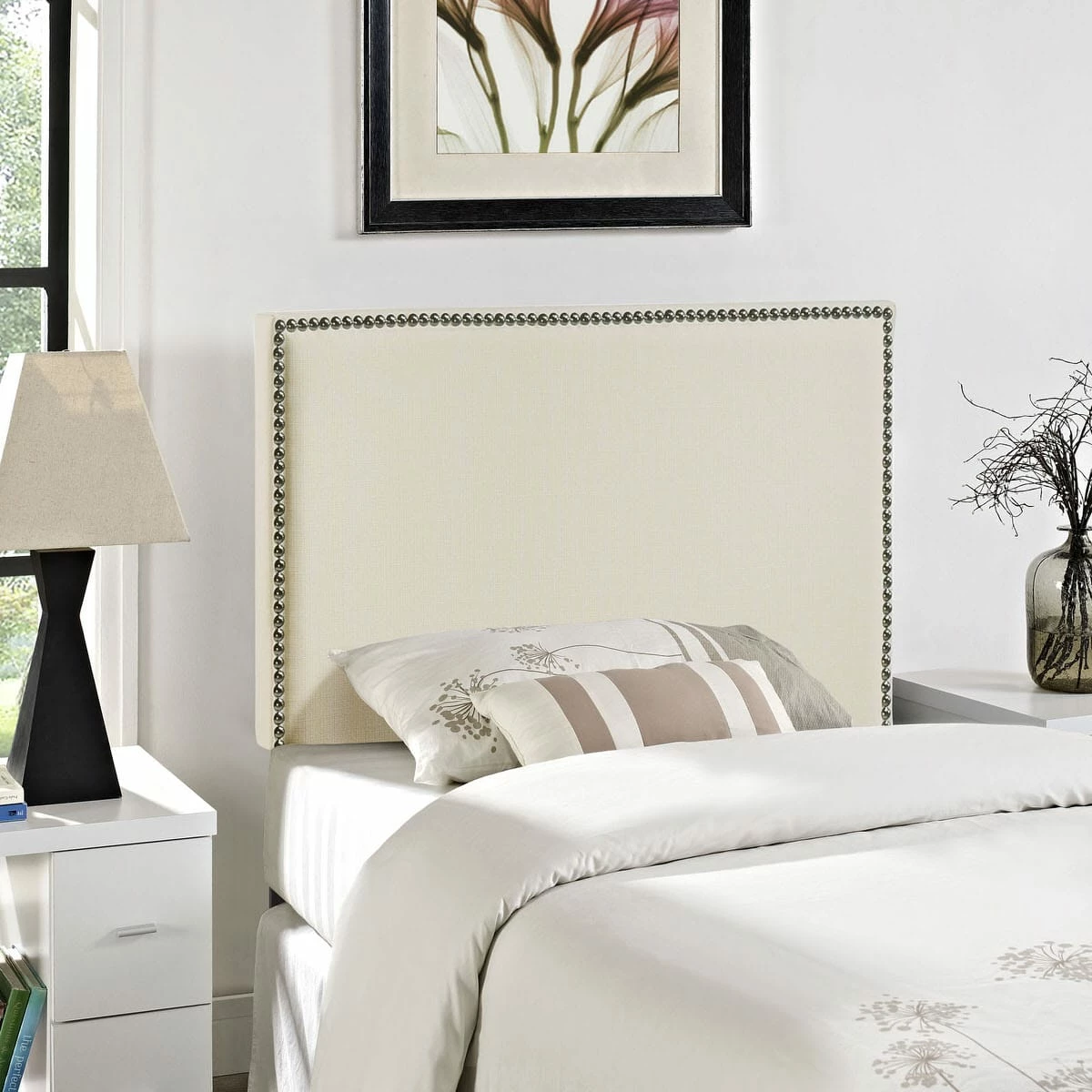 Region Twin Nailhead Upholstered Headboard Ivory by Modern Living