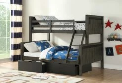 Twin/Full Bunk Bed Rustic Grey Finish With Dual Underbed Drawers In Low Sheen Black Finish