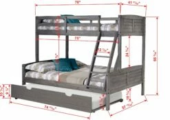 Twin/Full Mission Bunk Bed With Trundle Bed In Brushed Grey Finish