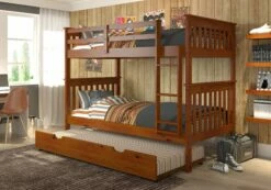 Twin/Twin Mission Bunk Bed With Trundle Bed In Light Espresso Finish