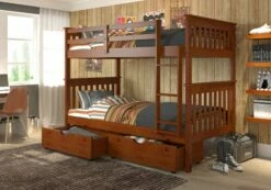 Twin/Twin Mission Bunk Bed With Trundle Bed Cappuccino Finish
