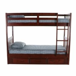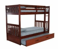 Twin/Twin Mission Bunk Bed With Twin Trundle Bed In Merlot Finish