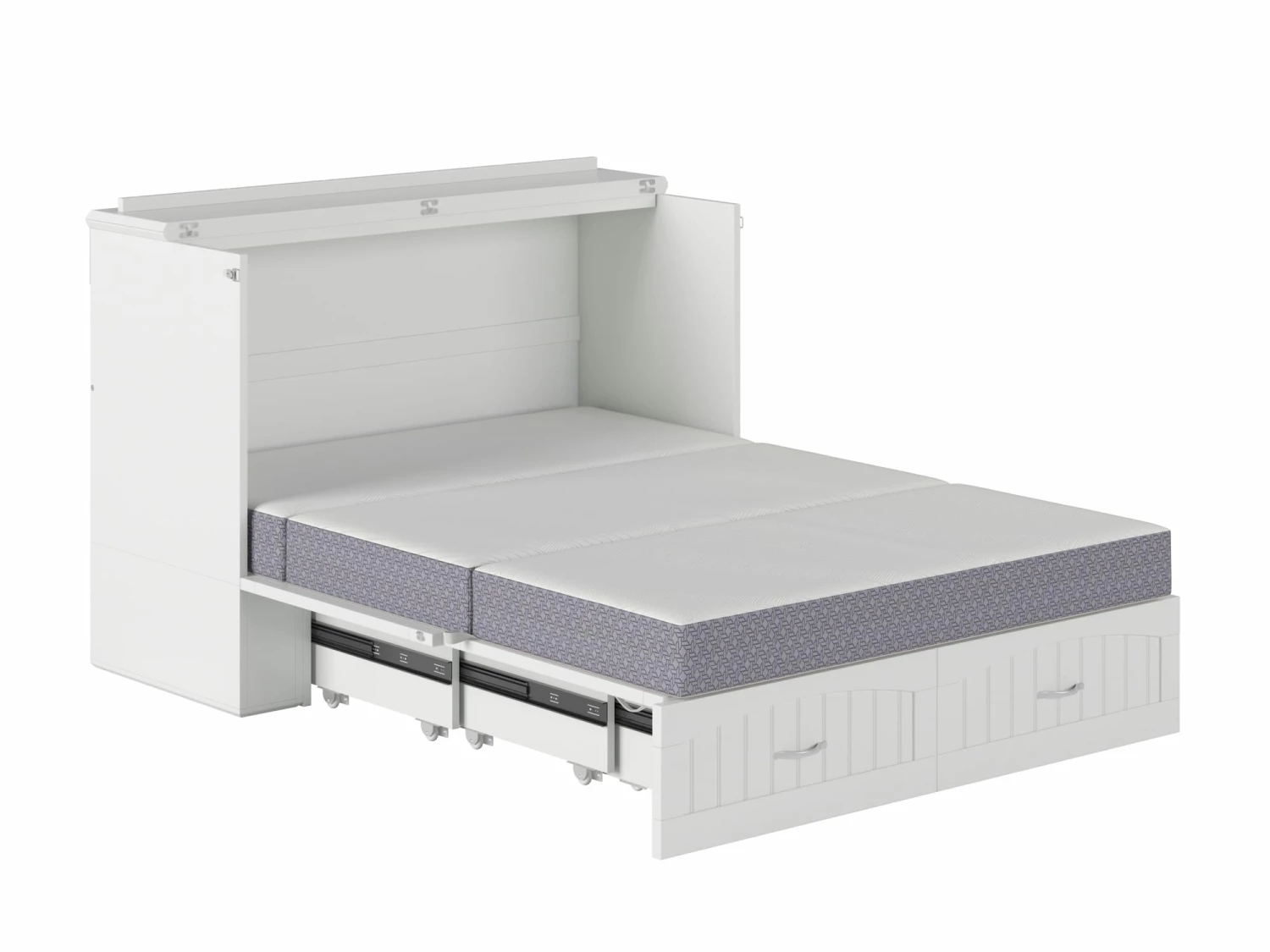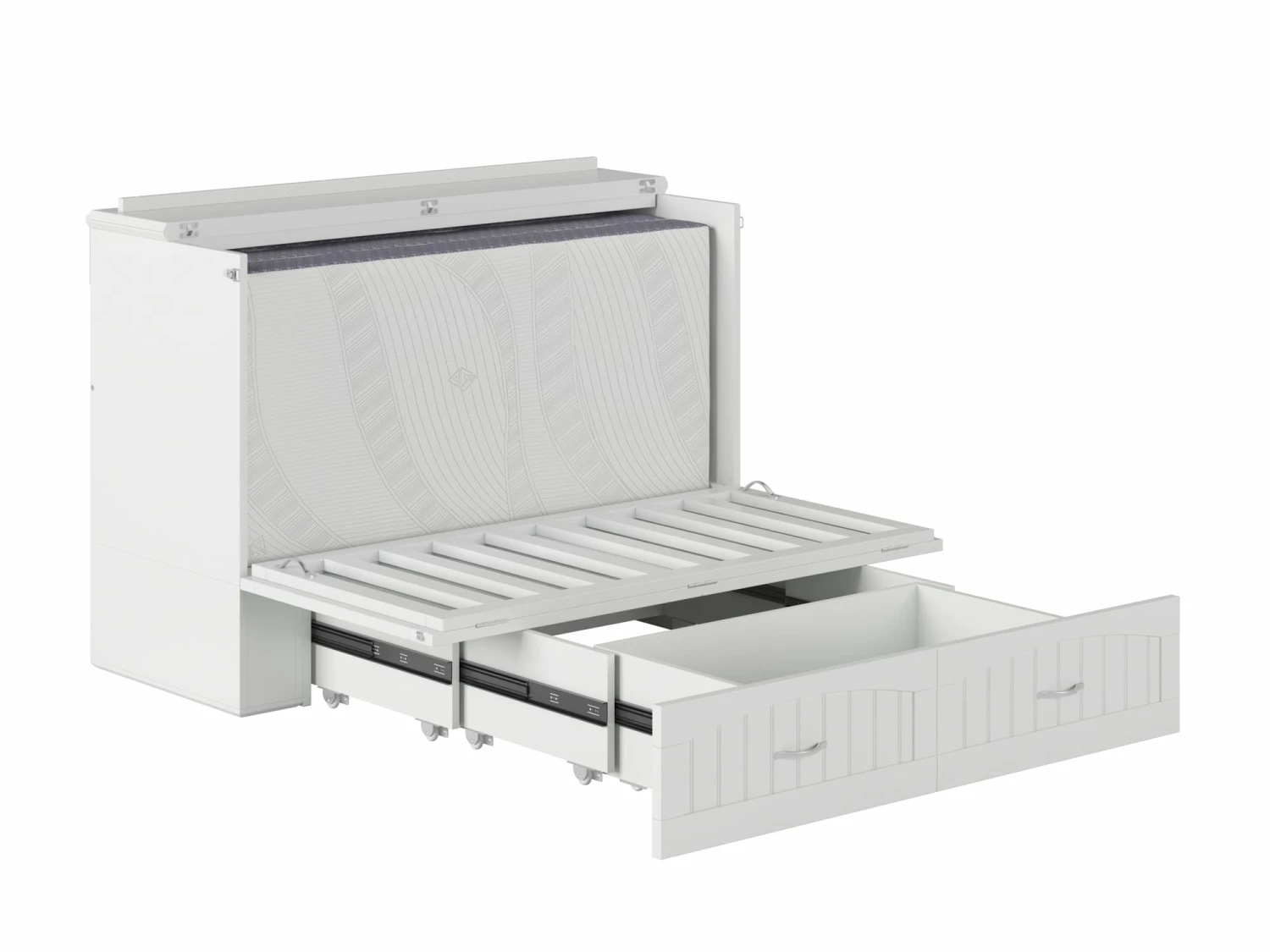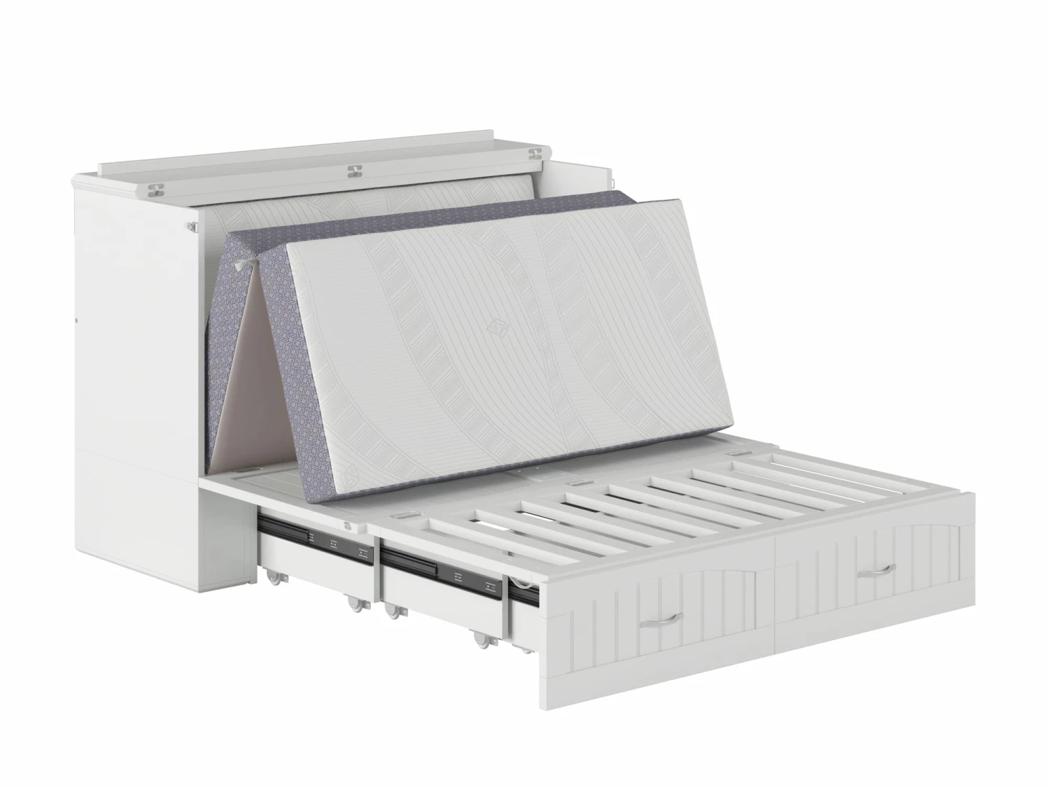 For big personalities with little room to spare: these beds are tucked inside sleek, compact chests, so you can entertain with ease. The Southampton Murphy Bed Chest is perfect for guest rooms, vacation homes, or anyone that loves to host! A folding memory foam mattress is hidden behind the cabinet’s sleek, cottage-style tongue and groove panelling. Just unlatch, unfold, and your guests have it made.