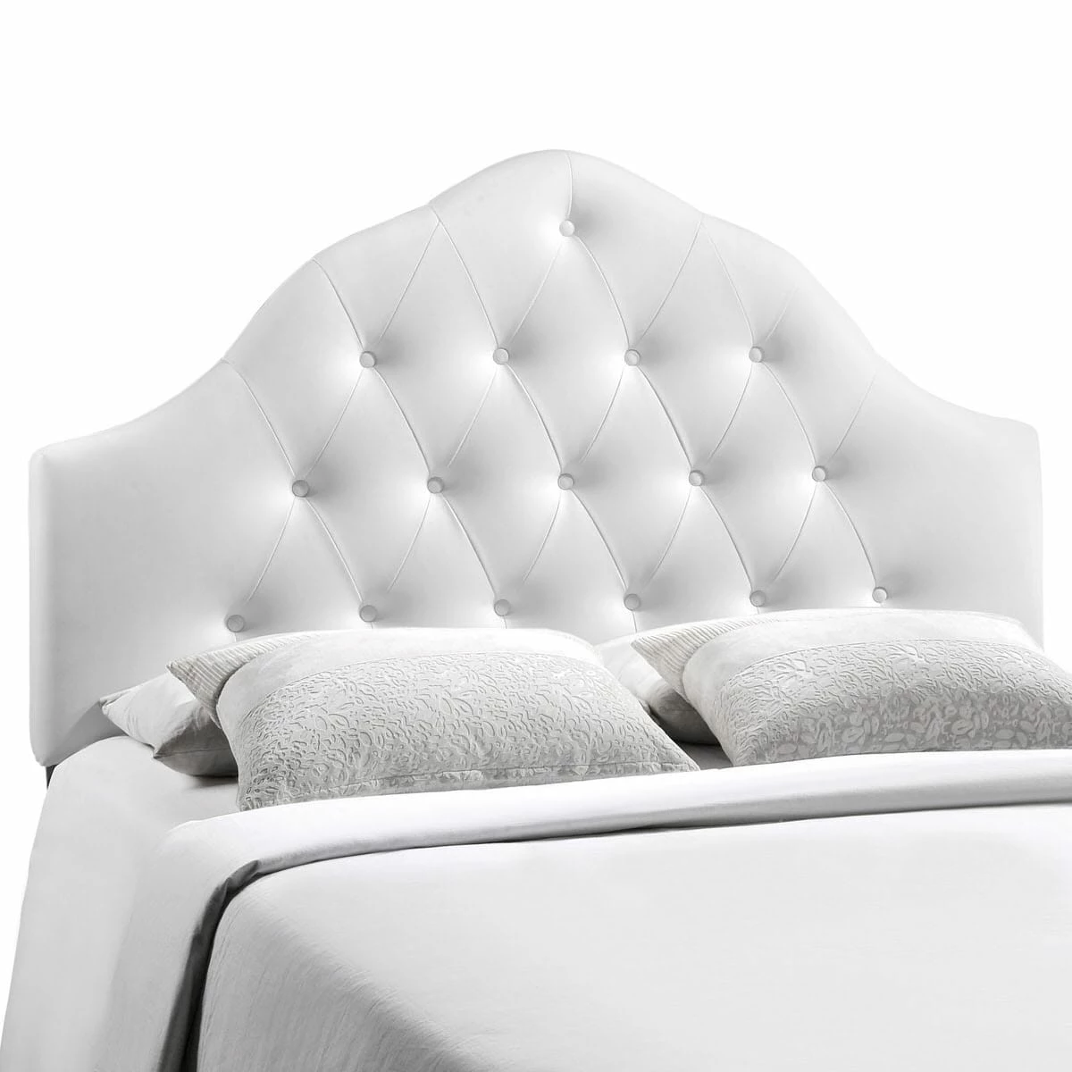 Spend more time reading and relaxing before sleep with the beautifully designed high arch Sovereign headboard. Magnificently laden with deep tufted buttons and finely upholstered in smooth vinyl, Sovereign ushers in a sense of regality and splendor to your bedroom decor. Eminently sophisticated, Sovereign comes fully padded and fits standard full size beds.