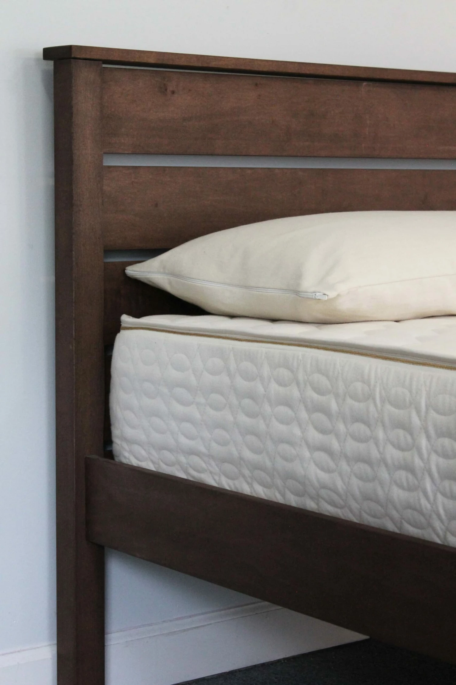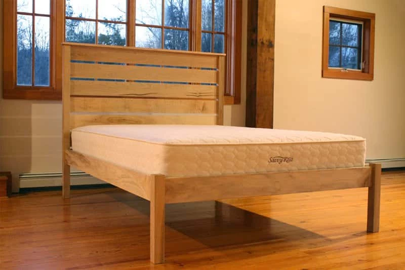 Like our flagship model, the Esmont natural platform bed features an all-maple frame with closely-spaced poplar slats and solid steel, mortised-in corner brackets. Traditional mortise-and-tenon joinery is also used for optimal strength and durability. Choose zero-VOC linseed oil; zero-VOC walnut, cedar or mahogany finish; or natural unfinished. No lacquers or varnishes are used. Simple assembly.