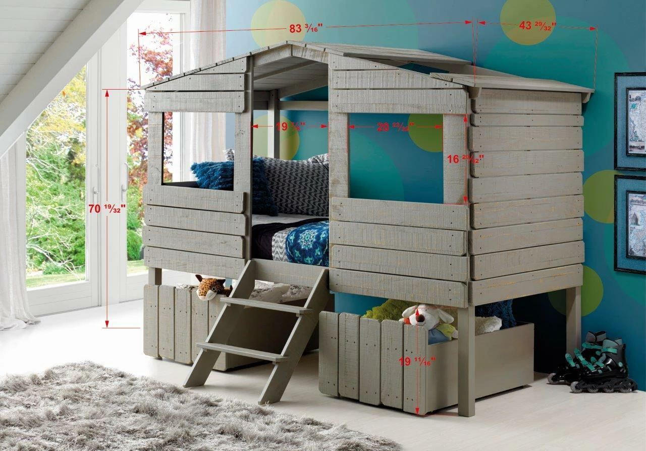 Twin Tree House Loft Rustic Grey w/Drawers by Donco