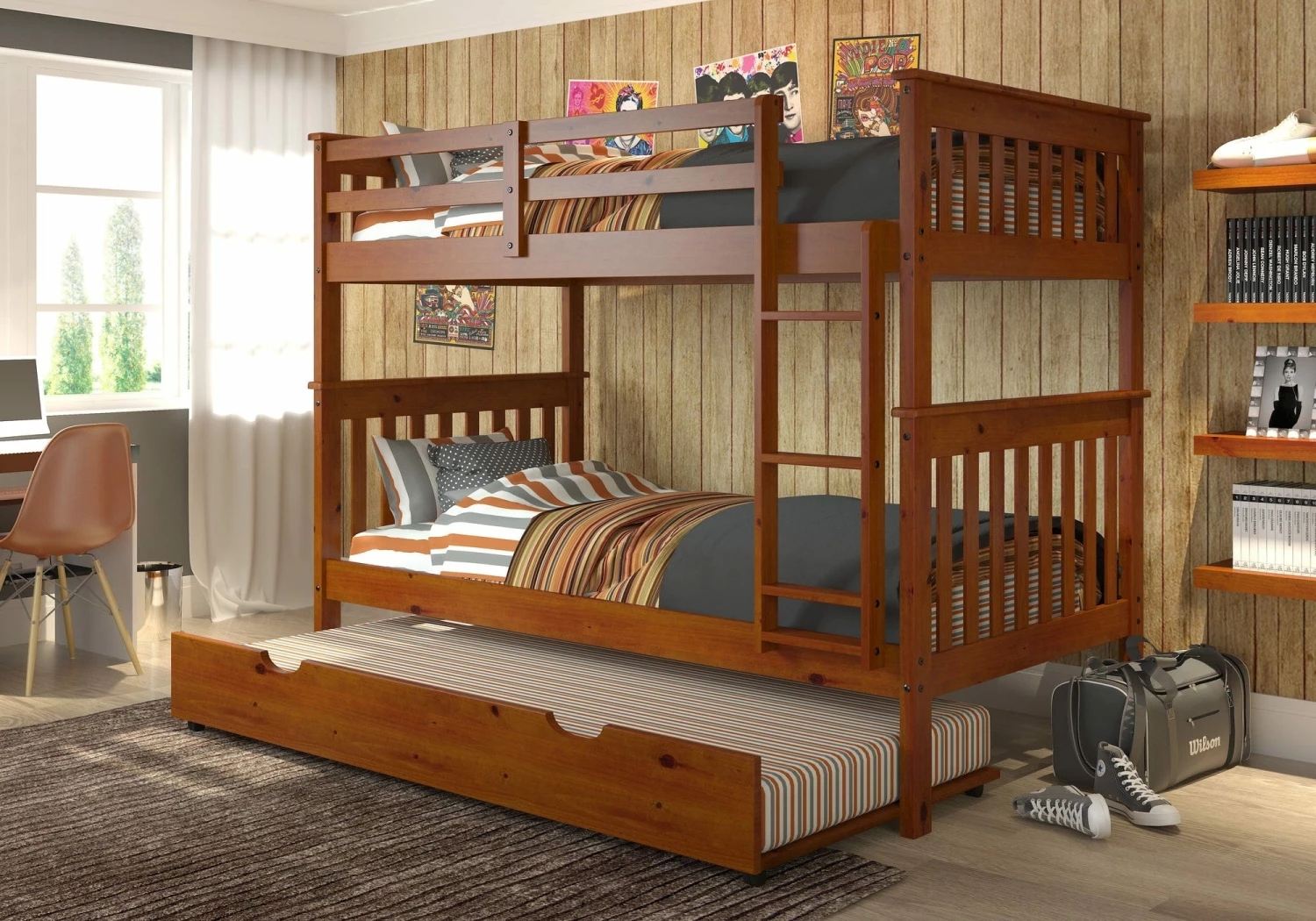 Twin/Twin Mission Bunk Bed With Trundle Bed In Light Espresso Finish by Donco