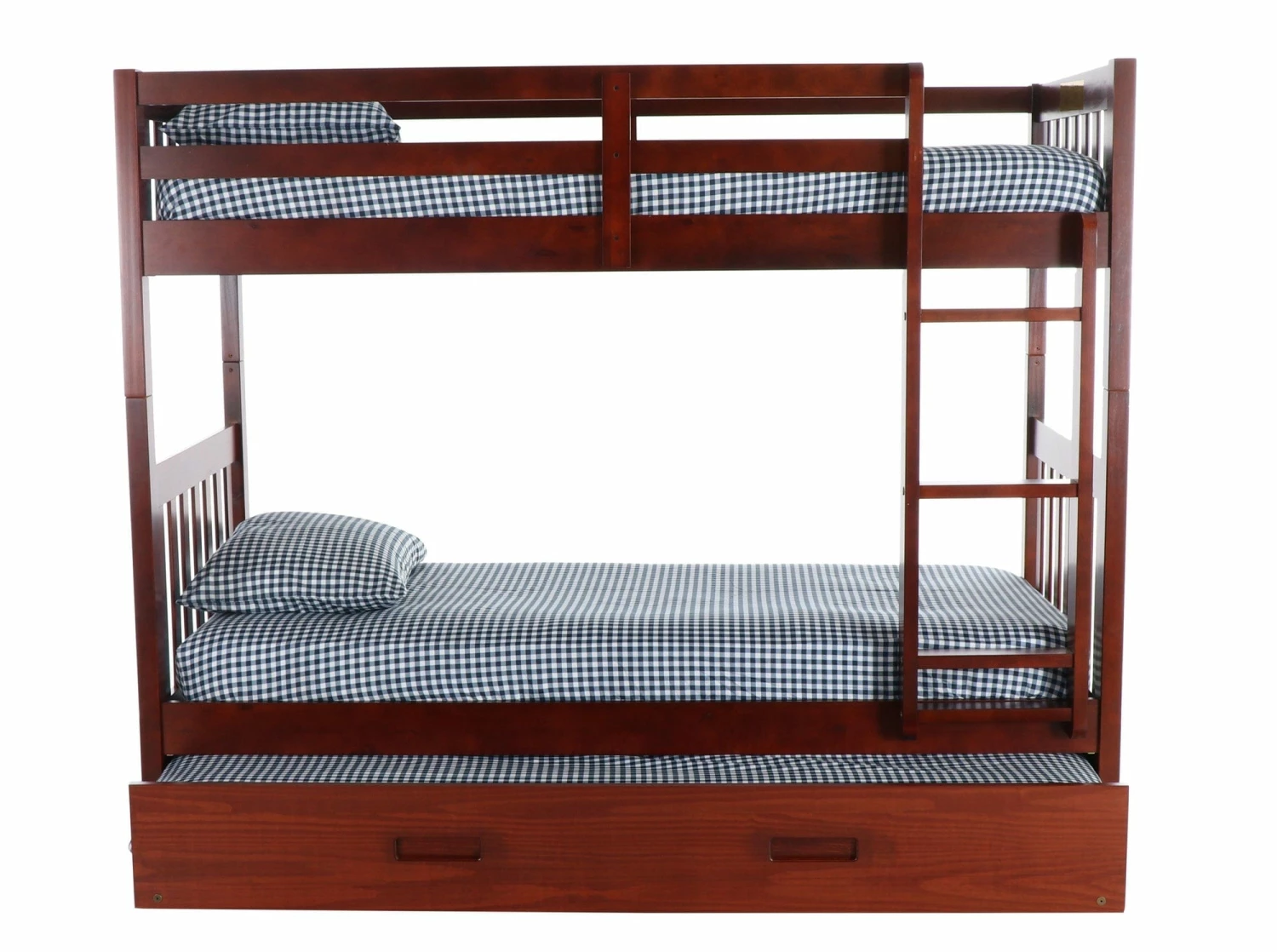 Twin/Twin Mission Bunk Bed With Twin Trundle Bed In Merlot Finish by Donco